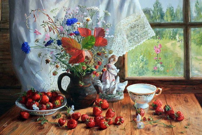 Его картины очаровательны в своей простоте: идиллические пейзажи, яркие натюрморты, зарисовки о крестьянском быте. От его работ веет теплом и спокойствием, полузабытыми воспоминаниями о каникулах, проведенных у бабушки, или о студенческих поездках "на картошку" 🙂