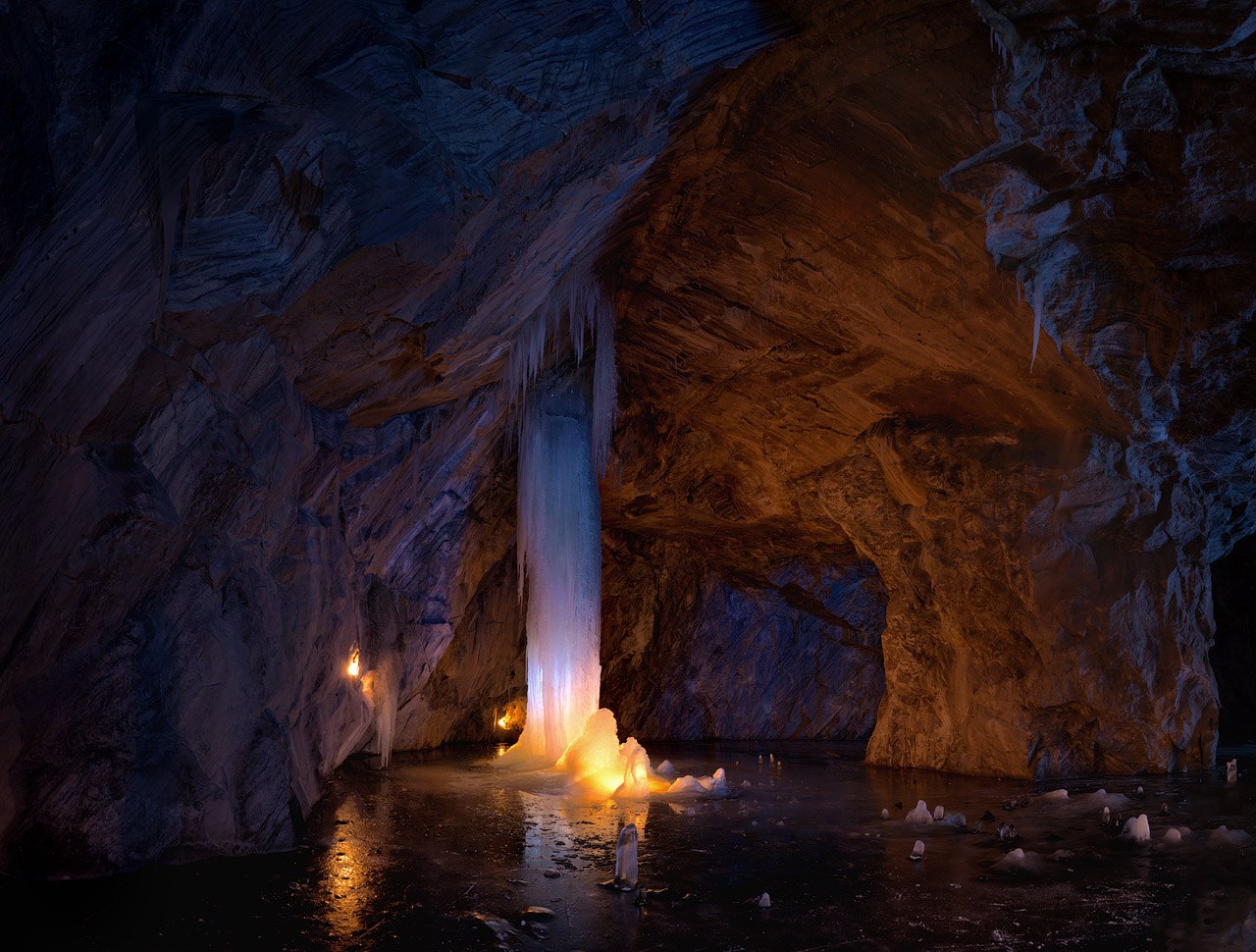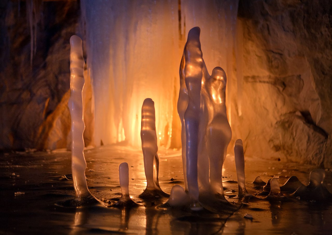 Особенностью провала является его микроклимат. В дальних частях выработки лёд никогда не тает, там со стен свисают причудливые сосульки. Но непосредственно в месте провала в тёплое время года образуется небольшое озеро. Поэтому, чтобы попасть вглубь выработки, нужно сначала на верёвке спуститься на лодку, а затем на ней добраться до ледяного «пола». Зимой всё проще: сразу спускаешься на крепкий лёд.