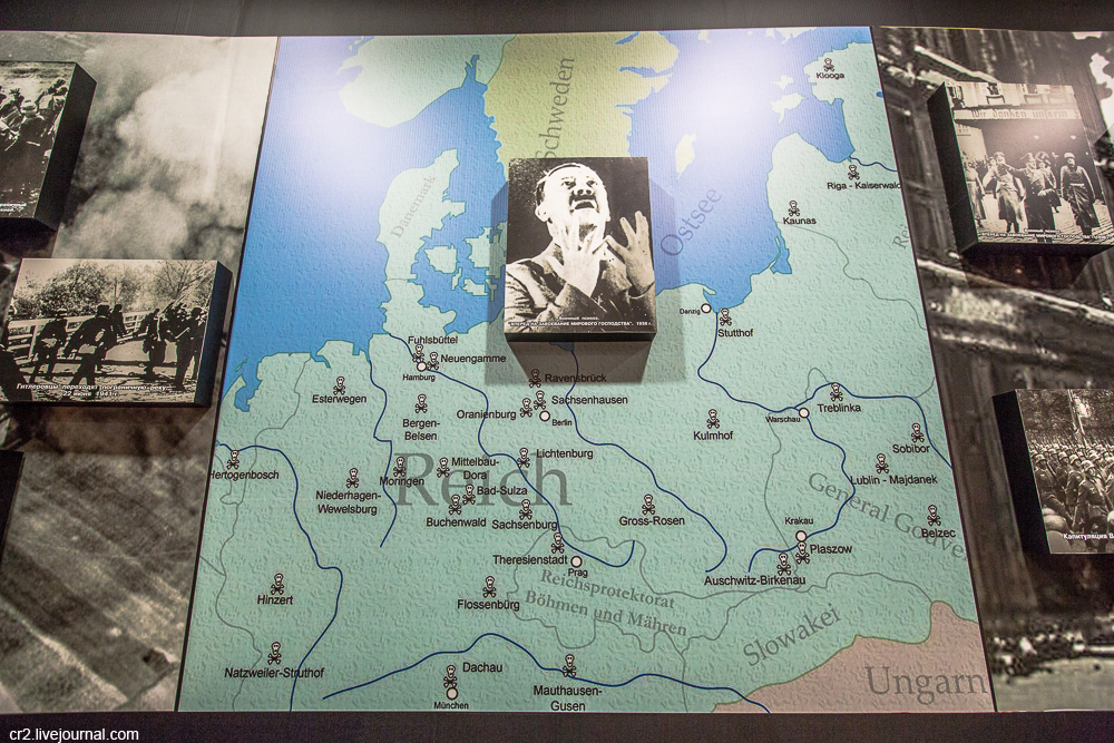 Первый зал рассказывает о фашистской Германии. Плакаты, карты, фотографии, деньги, награды тех лет