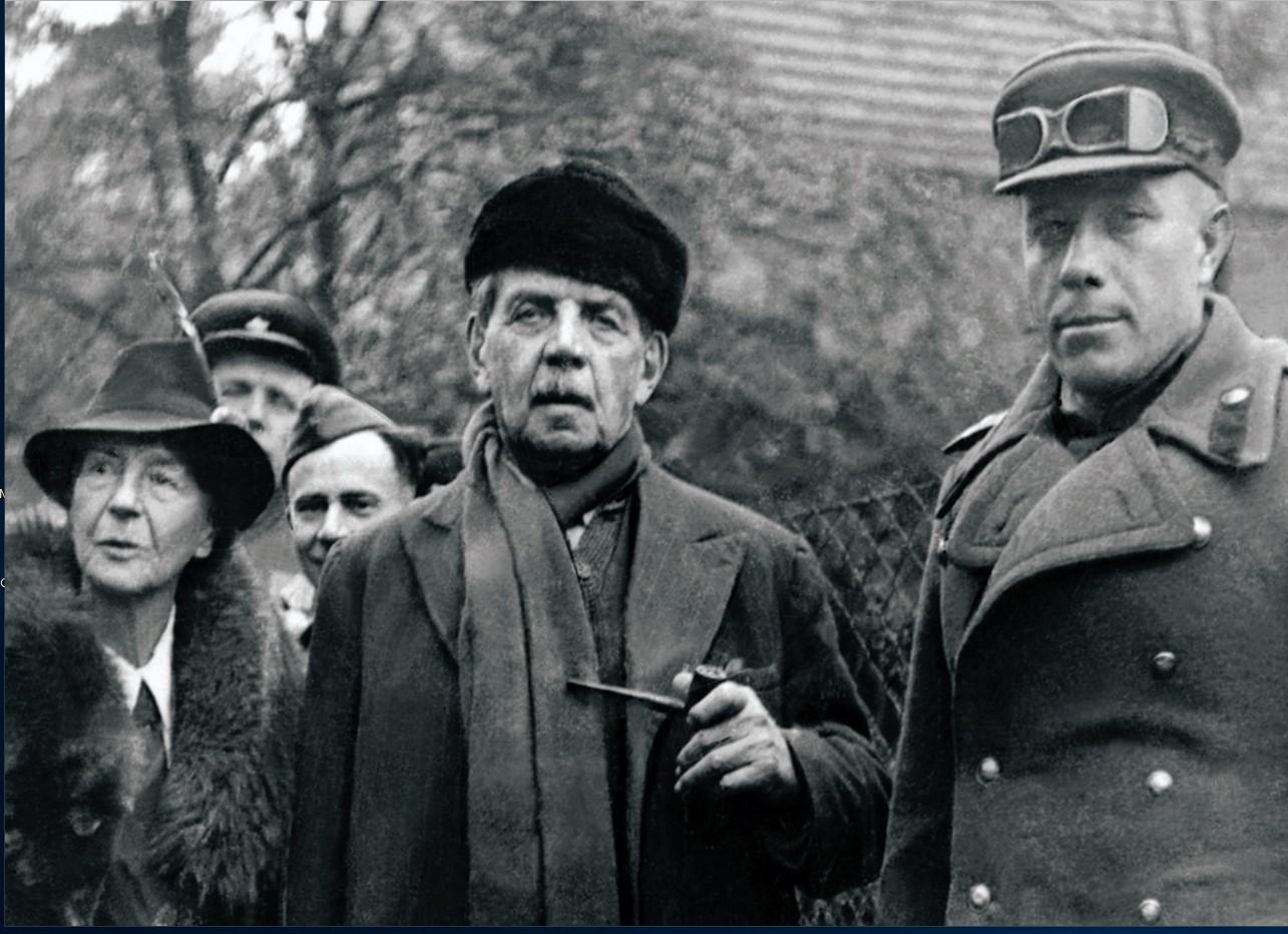 Бывший премьер-министр, председатель Национального собрания Франции Эдуар Эррио и его супруга с комбригом 63-й гвардейской Челябинской танковой бригады Михаилом Фомичевым