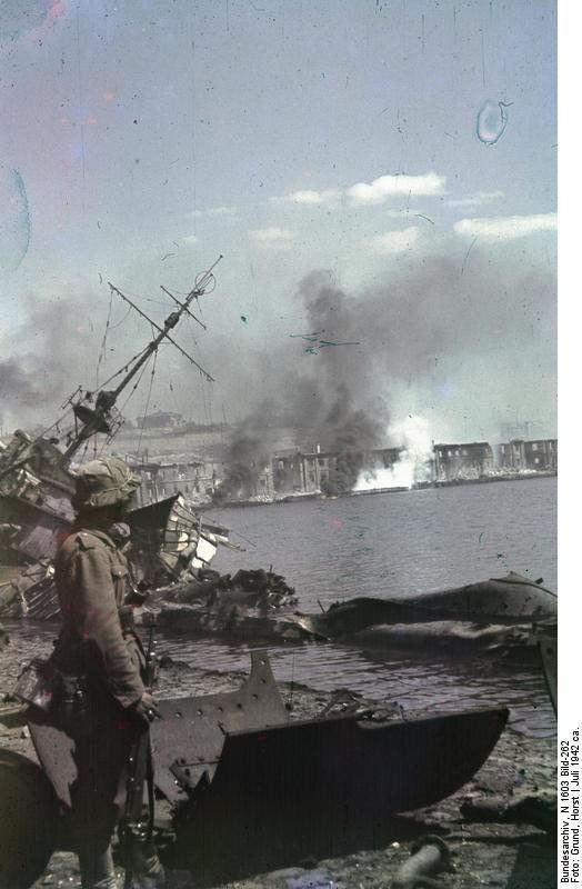 Июль 1942. Разрушенное здание в порту Севастополя.