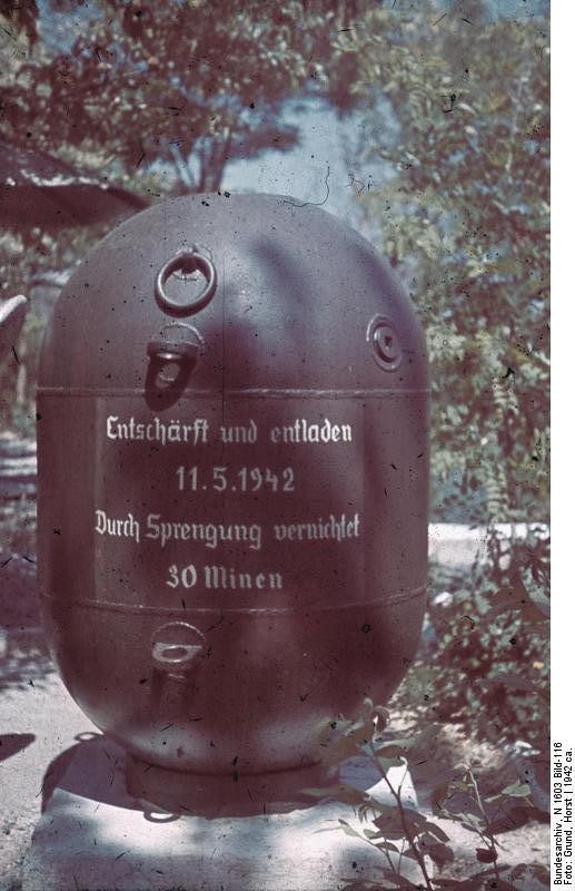 Неразорвавшийся 600 мм. снаряд, упавший на 30 батарею береговой обороны. Севастополь, 1942