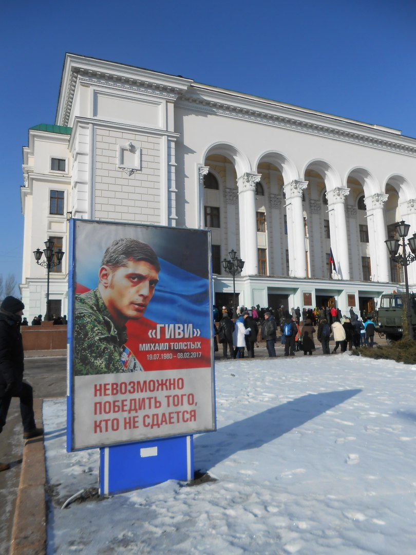 Жители Донецка и гости города простились с Героем ДНР, комбатом "Сомали" Михаилом Толстых (Гиви), который погиб 8 февраля в результате теракта.