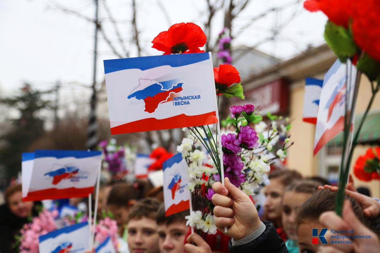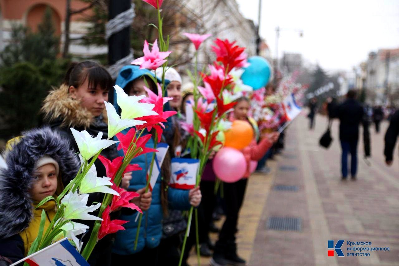 Кроме того, особую праздничную атмосферу создала молодежь полуострова, которая вышла на праздничное шествие с весенними цветами, шарами и флагами России и Крыма.