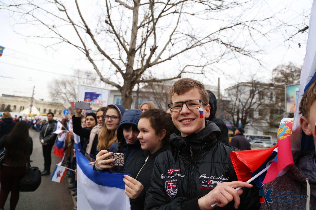 Тысячи людей вышли на улицы Симферополя в третью годовщину общекрымского референдума.