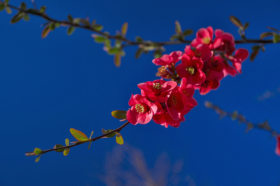 В то время, когда в Японии цветет сакура, в Крыму феерией красок взорвались миндаль с японской айвой.