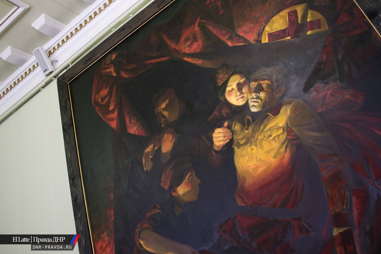 Выставка петербургского живописца Александра Новосёлова о мире и русской деревне, Великой Отечественной войне и о Донецкой Народной Республике в стенах Донецкого республиканского художественного музея.