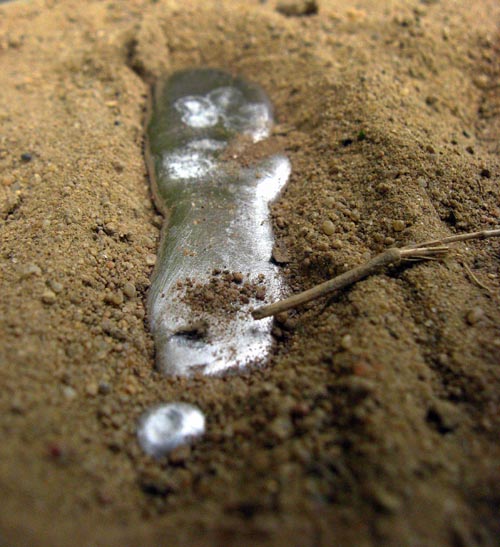 Часто вы сегодня встречаете на улице бесхозный аккумулятор? А вот раньше они почему-то находились, относились на пустырь или просто за мусорку, где из свинцовых пластин выплавлялись разные фигурки, амулеты, медальоны, кастеты. По предпочтениям. Температура плавления у свинца невысокая, поэтому отбитые на камне от электролита пластины гнули, клали в консервную банку и плавили на огне. Формочки для изделия откапывали в глине или просто в земле. Жидкий свинец, пока он не остыл, красиво блестит… хотя занятие было и не самым безопасным.