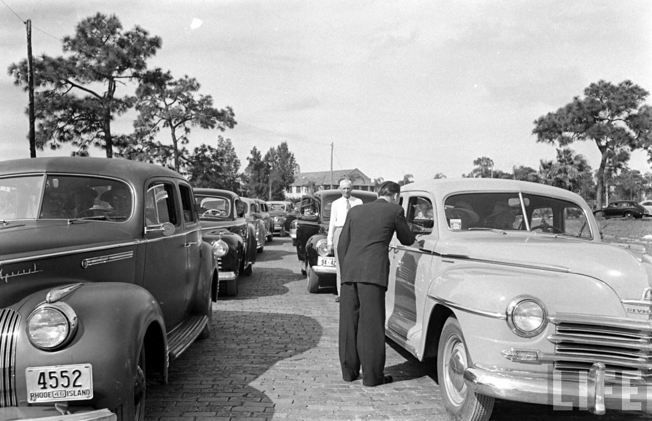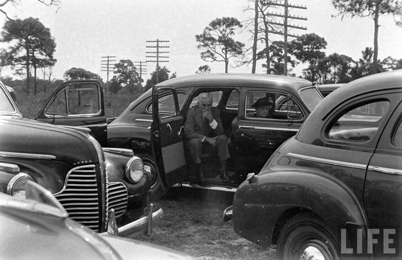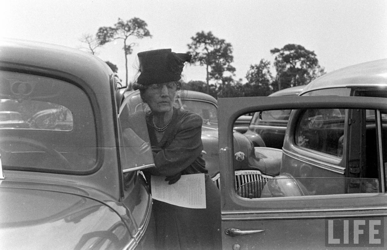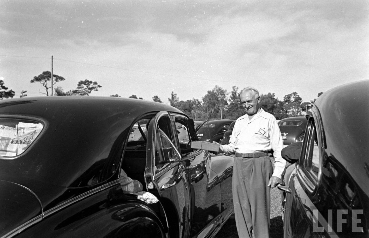 Ретро фото из американского Санкт-Петербурга, штат Флорида. Люди в церковь приехали. Фото сняты в 1947 году фотографом Sam Shere для журнала LIFE, но так и не были опубликованы.