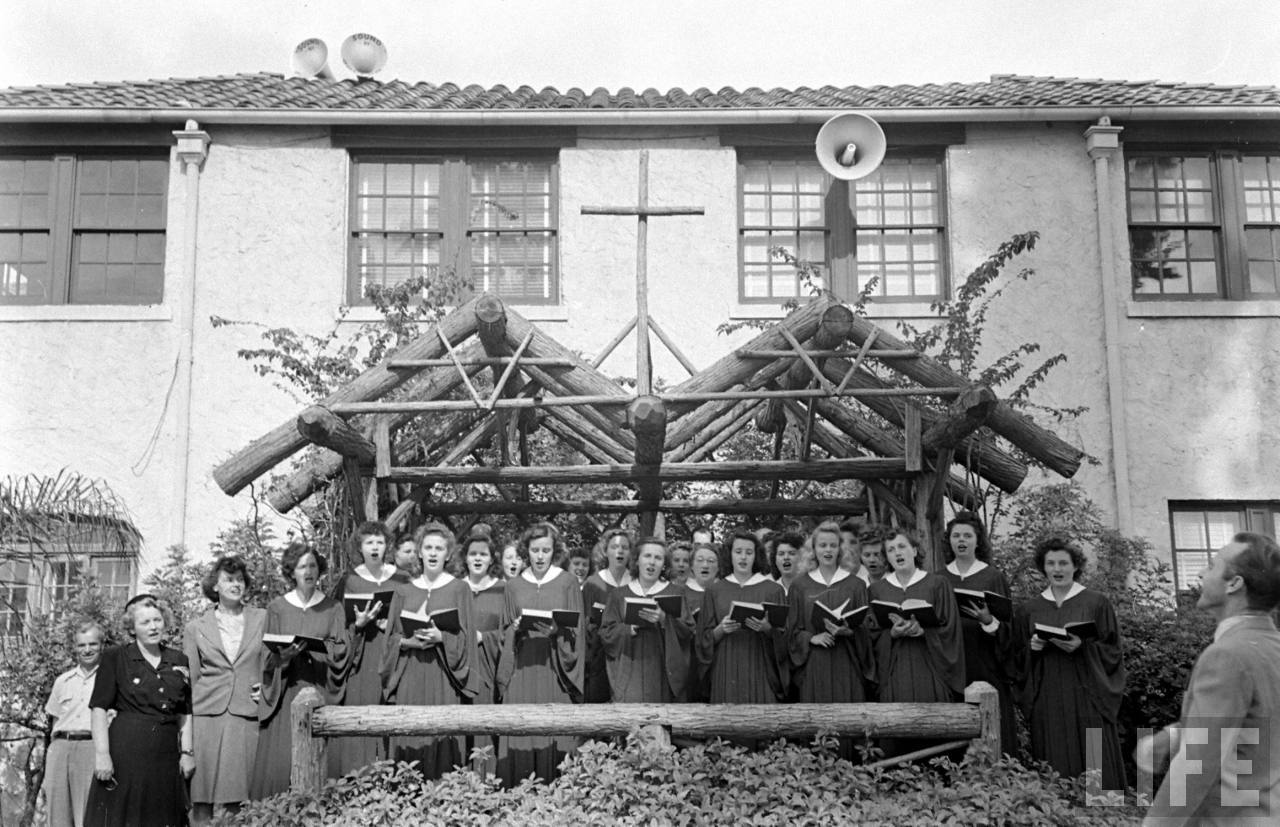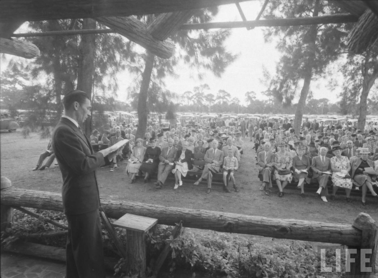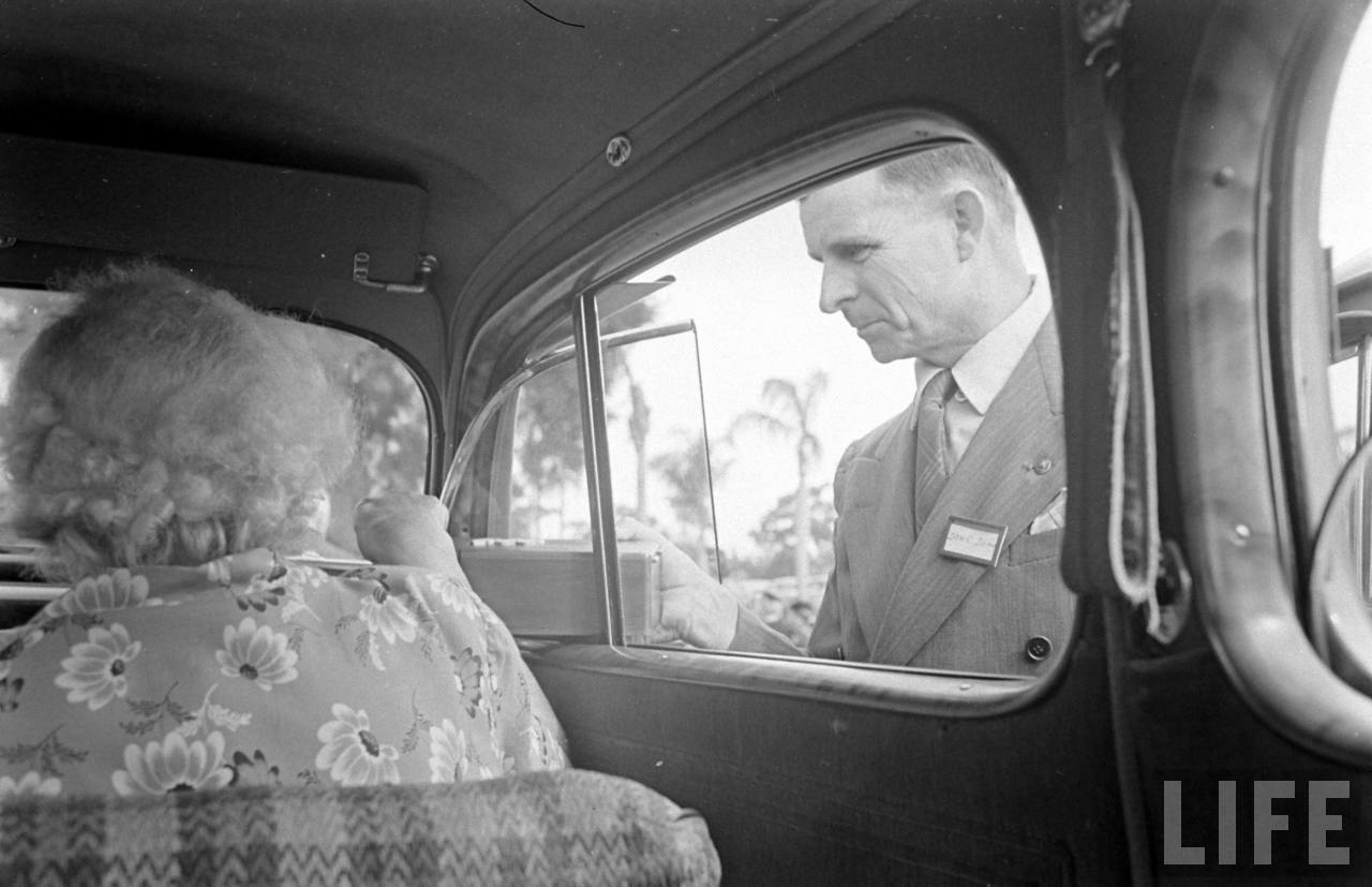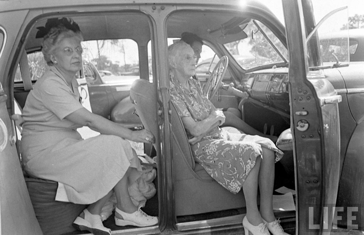 Ретро фото из американского Санкт-Петербурга, штат Флорида. Люди в церковь приехали. Фото сняты в 1947 году фотографом Sam Shere для журнала LIFE, но так и не были опубликованы.