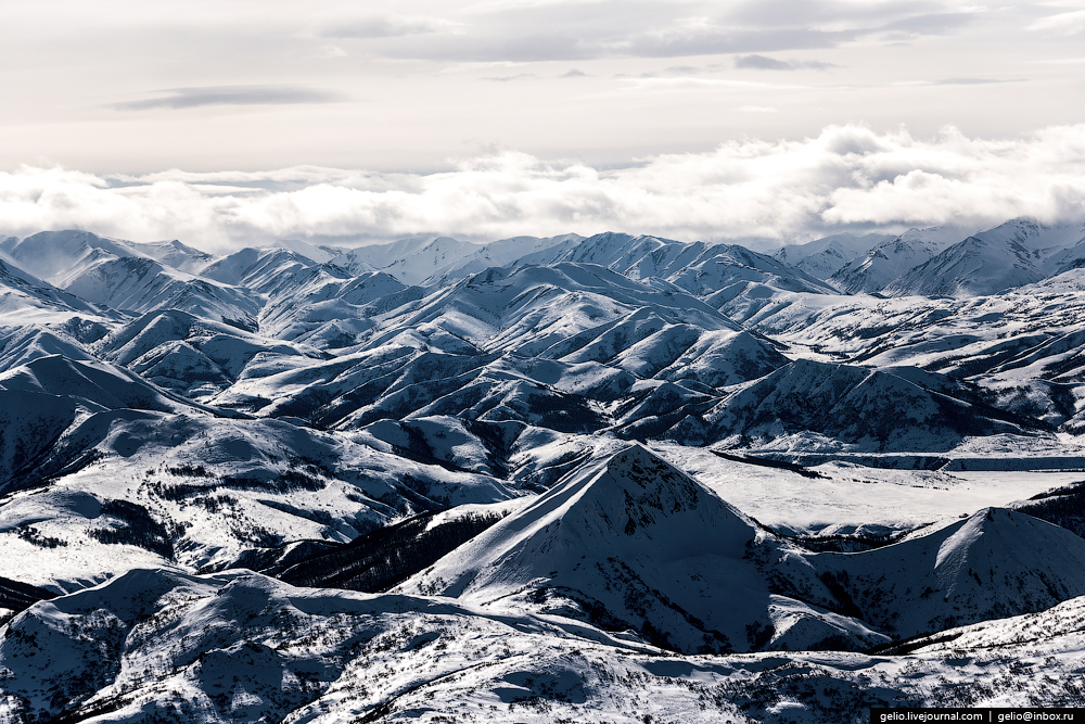 Полуостров Камчатка - уникальная горная местность в России. Срединный вулканический хребет делит полуостров на западную и восточную части. Камчатка с запада омывается Охотским морем, с востока - Беринговым морем и Тихим океаном. Экологически чистая дикая природа привлекает всё больше туристов, несмотря на отдалённость и труднодоступность этих мест. Добраться сюда можно только по воздуху или по морю.