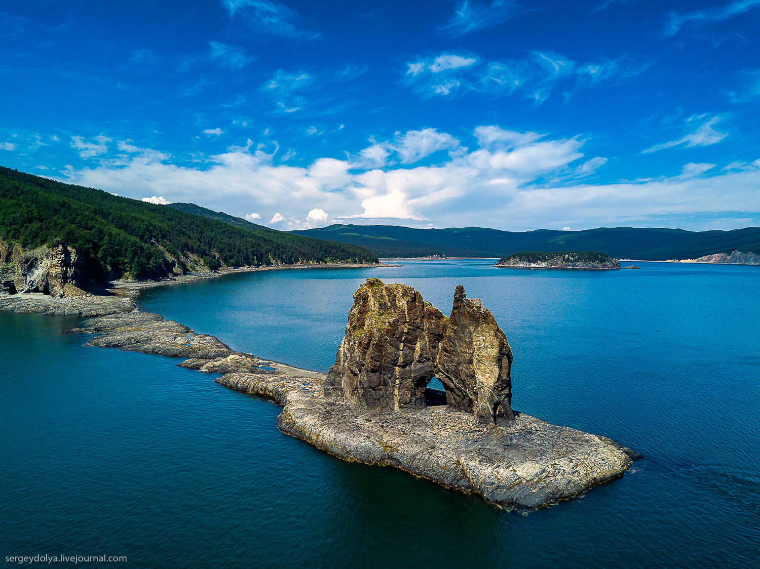 Очень много живописных арок. Самая известная называется "Окно в Шантары" и находится по пути из Хабаровска в центр Шантарского архипелага