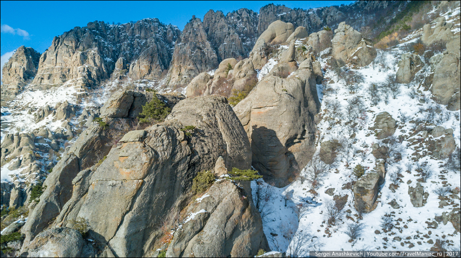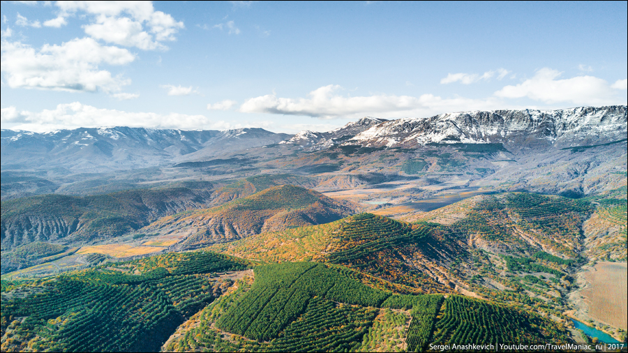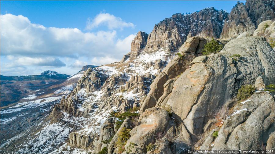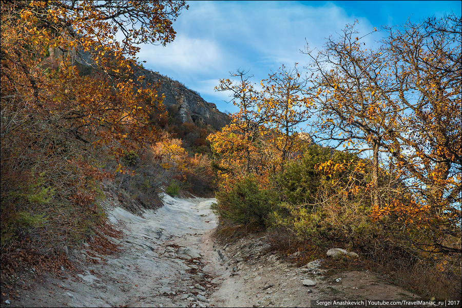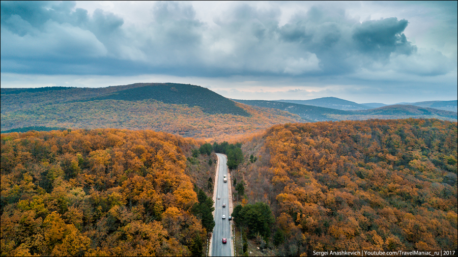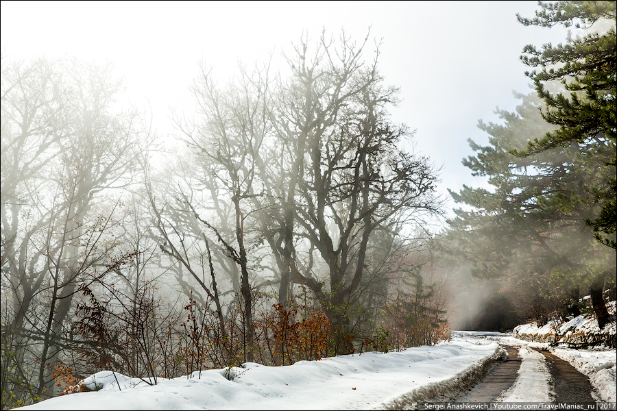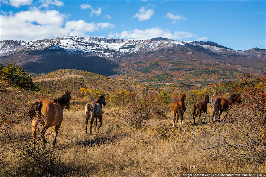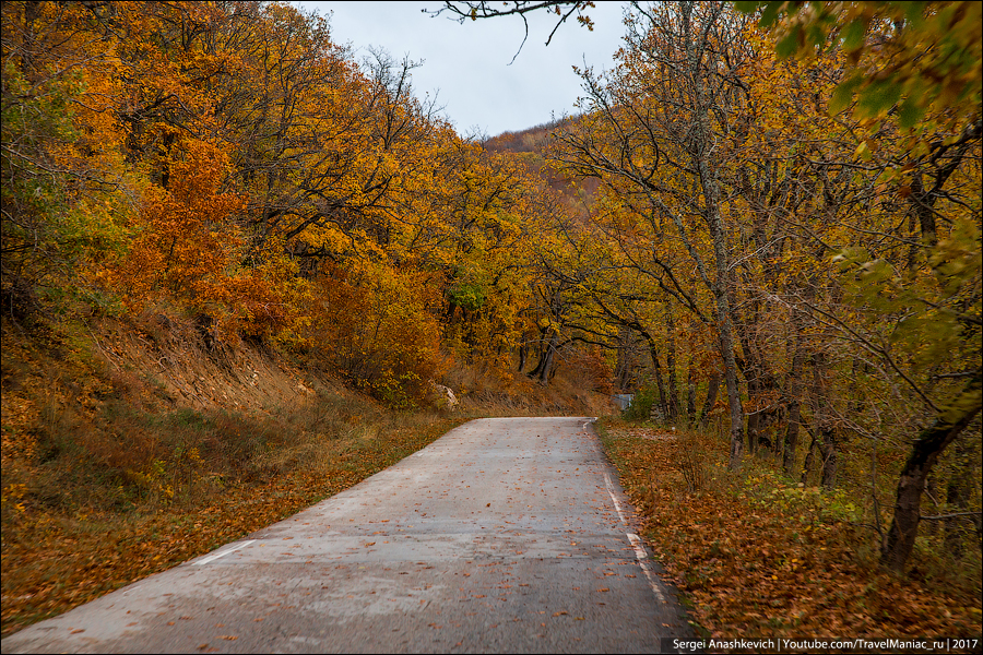Затем был заснеженный серпантин на Ай-Петри, выныривающий из облаков квадрокоптер над Таракташской тропой, благородные олени и осенние крокусы, невероятная разноцветная дорога вдоль Байдарской долины и предзакатный Мангуп, с одной стороны которого уже поздний ноябрь без единого листа, а с другой — разноцветье начала октября…