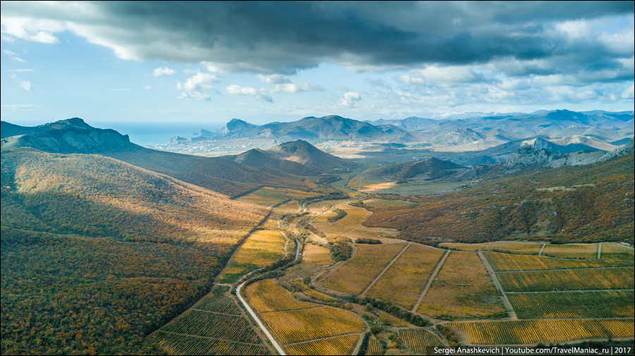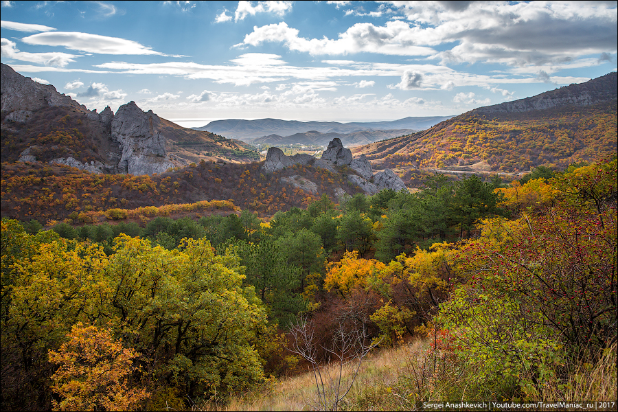 За 5 дней я проехал от Коктебеля до Севастополя, застав и эпичное небо над Карадагом и Меганомом, и настоящую золотую осень с потрясающе разноцветными виноградникамии в Солнечной Долине, и еще нетронутые осенью склоны в долине Сотера, и почти зимнюю Долину Привидений, припорошенную первым снегом.