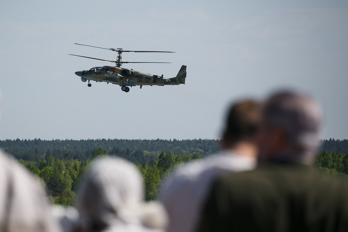 Также одиночный пилотаж выполнили экипажи самолета штурмовика Су-25 Липецкого авиацентра и ударного вертолета Ка-52 Торжокского авиацентра.