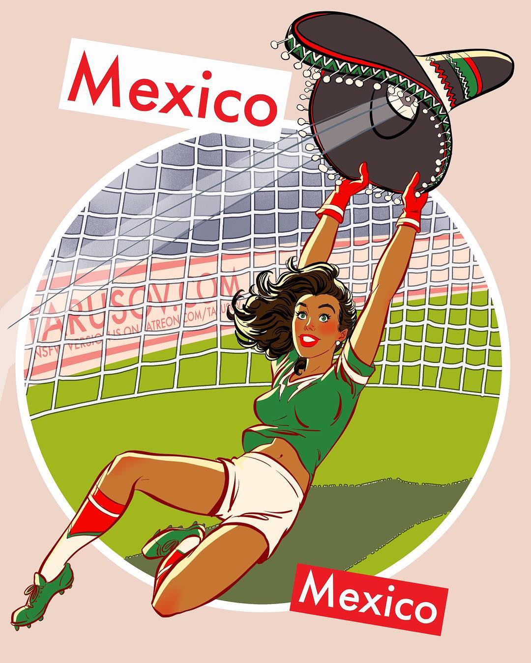 Футбольные болельщицы в пин-ап стиле от российского художника Андрея Тарусова
