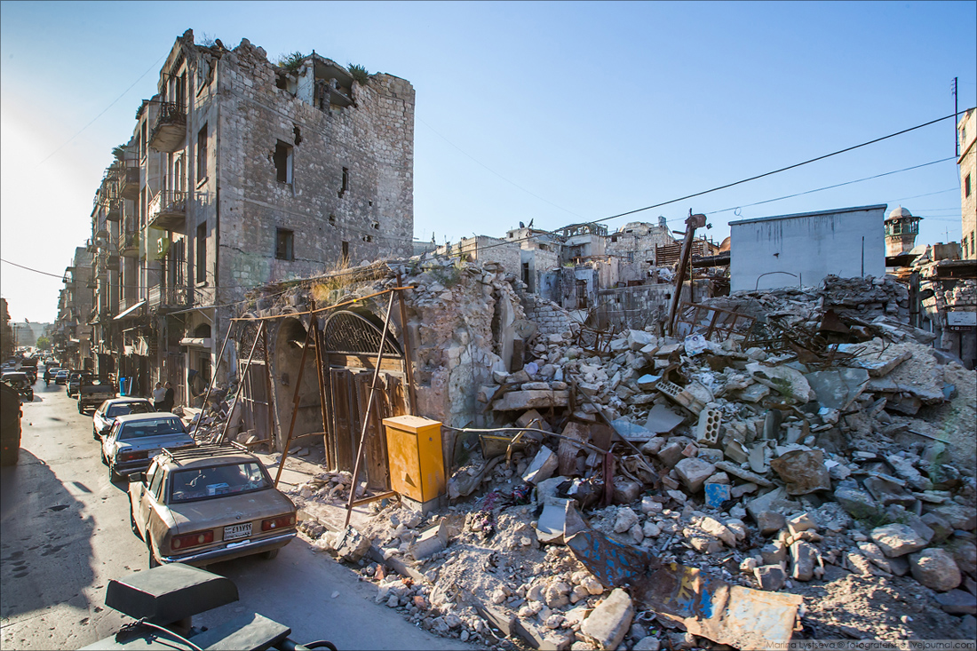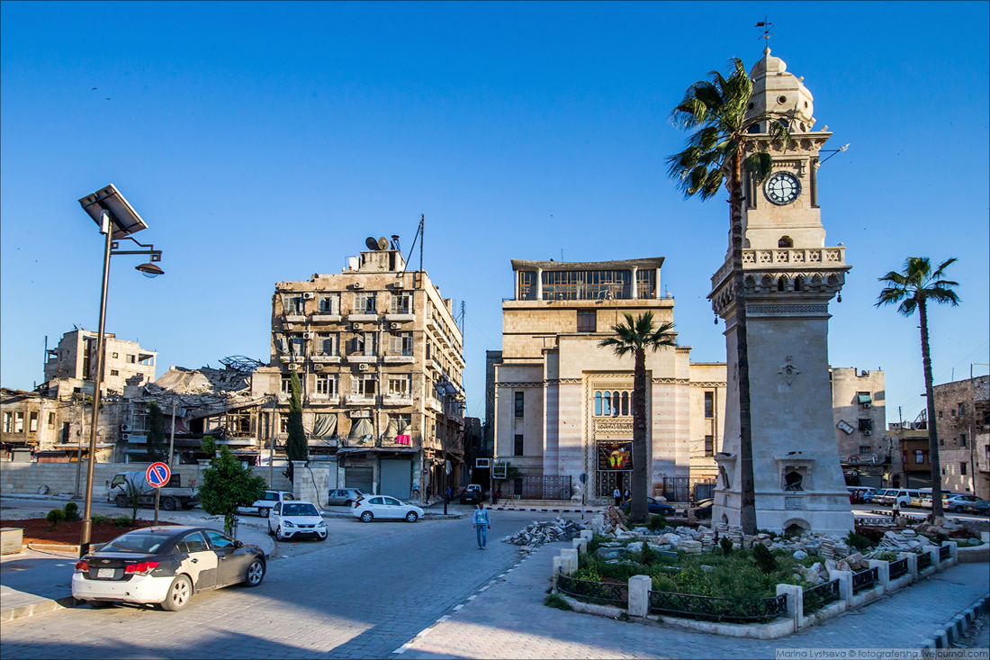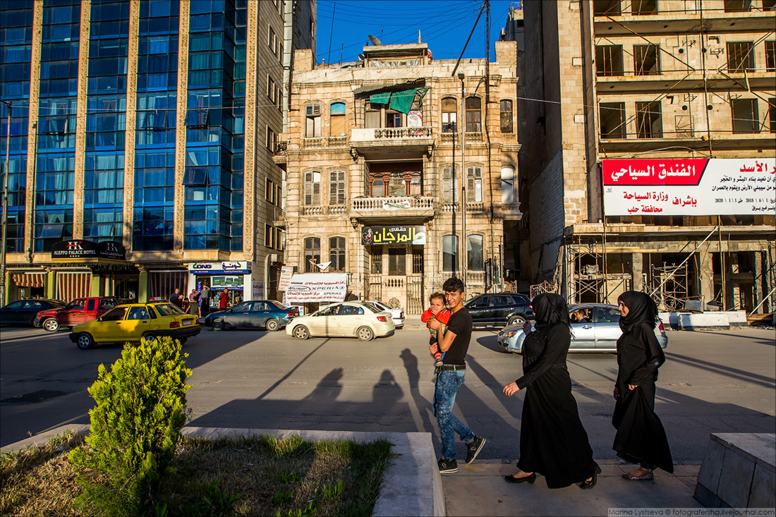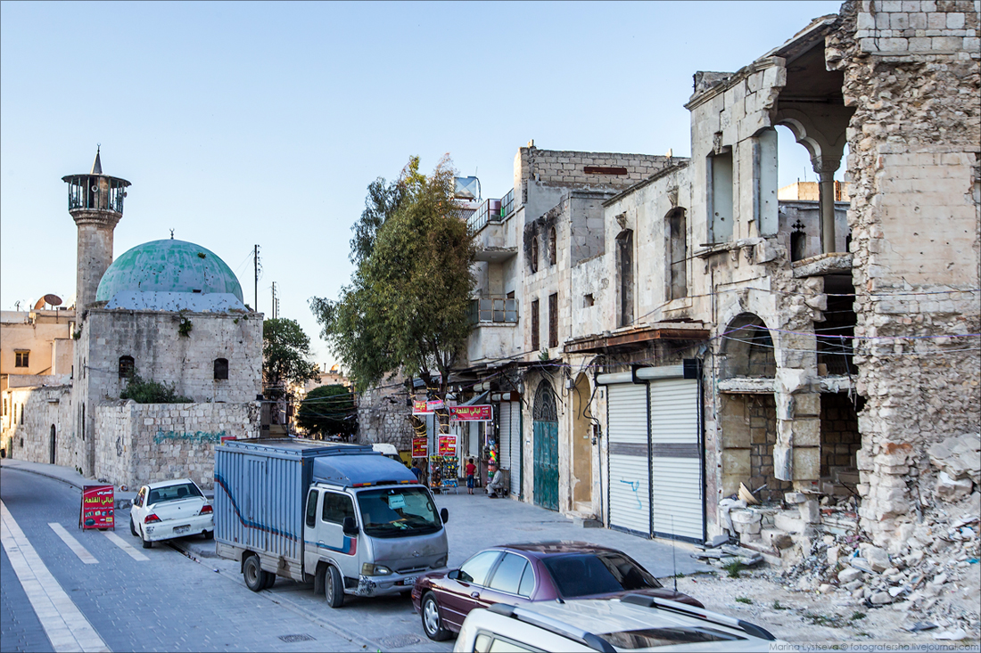 Ближе к деловому центру Алеппо целых и восстановленных зданий всё больше.