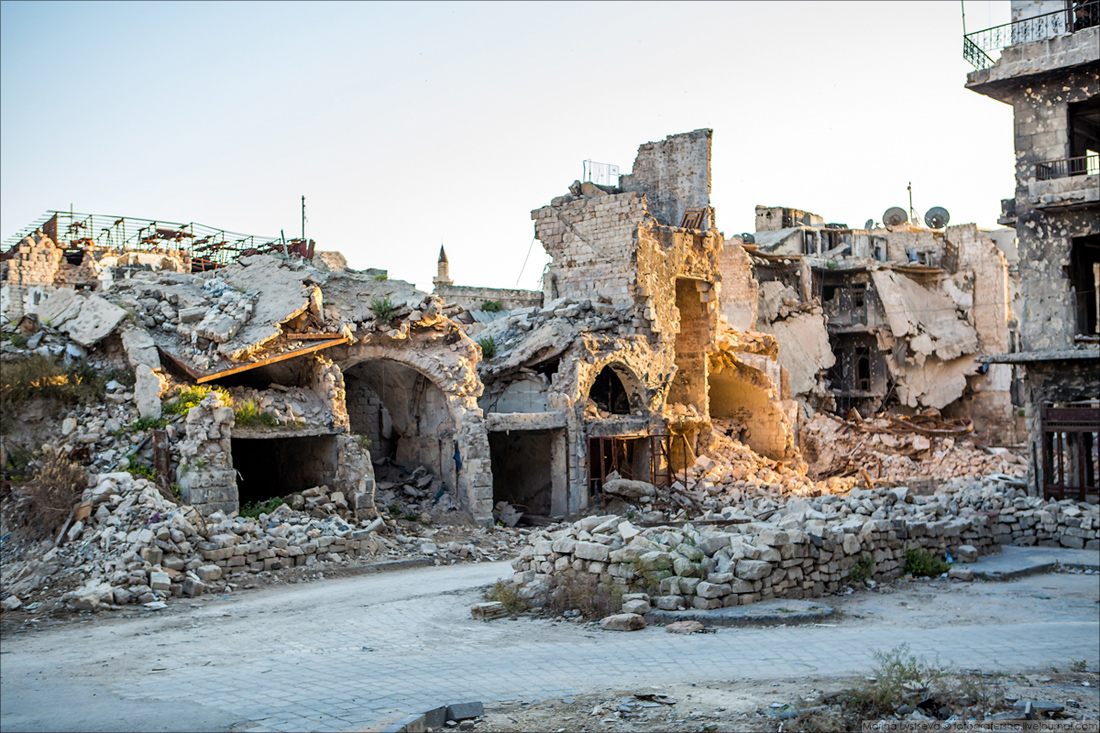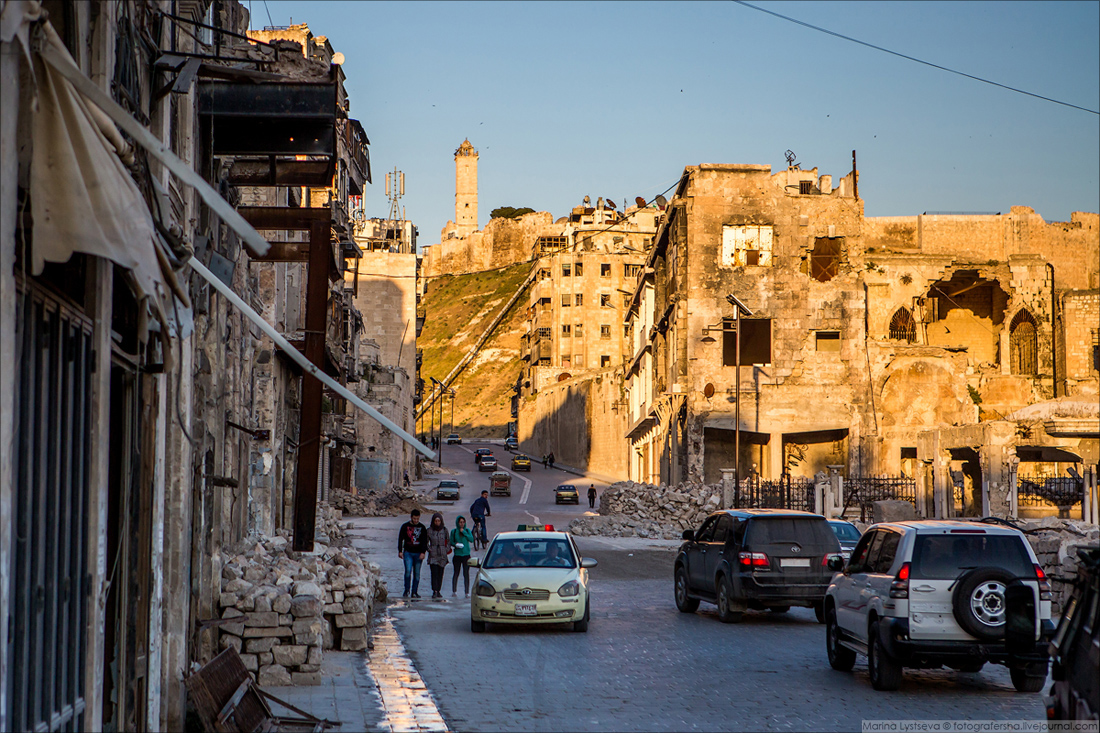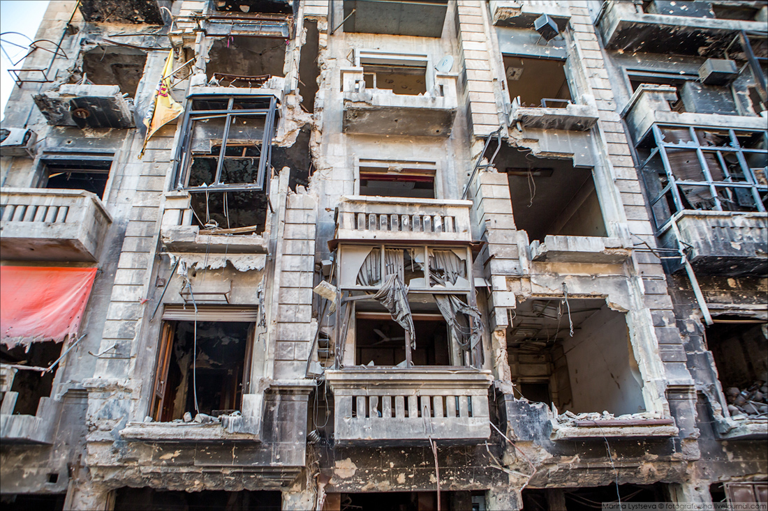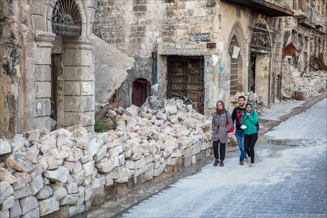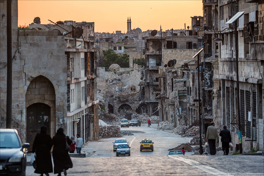 Ближе к деловому центру Алеппо целых и восстановленных зданий всё больше.