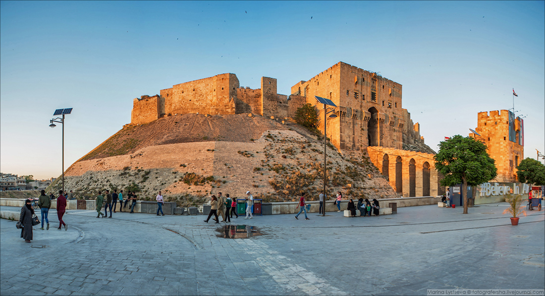 Сейчас на том холме возвышается Цитадель, построенная в XIII веке, и которая является символом Алеппо.