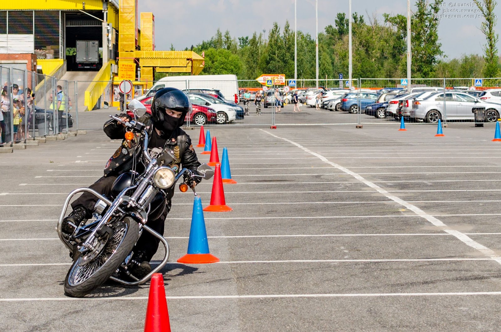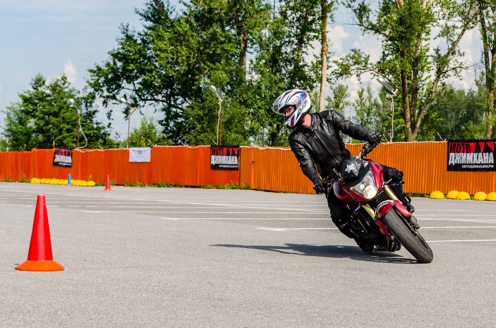 Справка: Мотоджимхана (motorcycle gymkhana) — спортивное испытание на время, в котором участники на мотоциклах соревнуются на самое быстрое маневрирование на асфальтовой площадке среди искусственных препятствий в виде конусов.