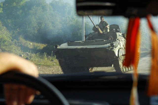 В 5 утра начала бить тяжелая ствольная артиллерия. Комбат и личный состав максимально старались избежать боестолкновений. Но через час на базу миротворцев при поддержке пехоты пошли грузинские танки. Прицельным огнем был разбит глаз — наблюдательный пост. Начались первые потери. На пути грузинских Т-72, купленных на Украине, встали БМП миротворцев.