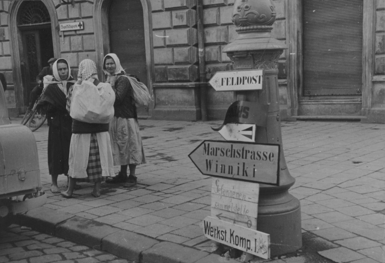 Немецкие дорожные указатели на улице Львова, лето 1941