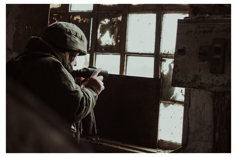 | Военнослужащий подразделения ДНР в окопах Авдеевской промзоны. 2017 |