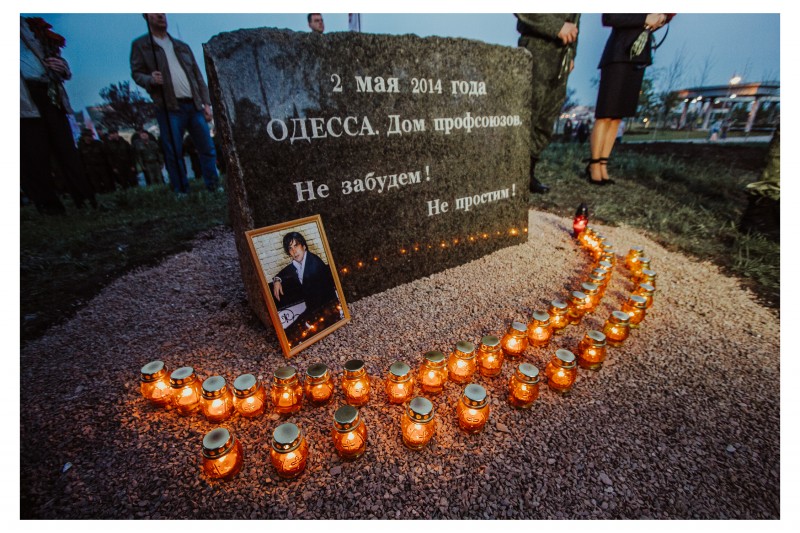 Памятный знак жертвам трагедии в одесском Доме профсоюзов 2 мая 2014. 2 мая 2018, Донецк.