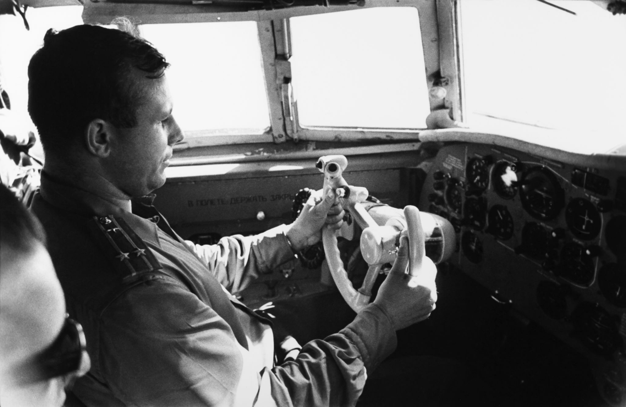 1960-е. Ю. Гагарин на борту самолета