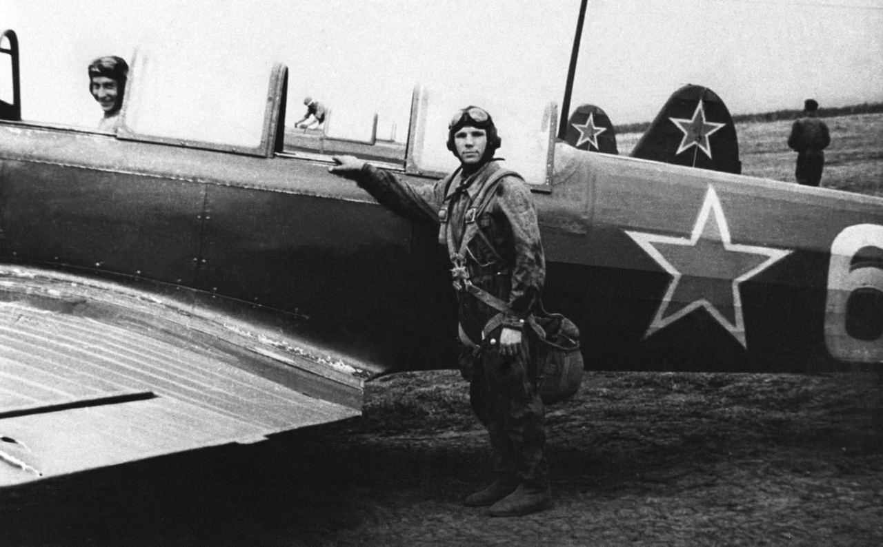1955. Юрий Гагарин в кабине самолета во время обучения в 1-ом военном авиационном училище лётчиков имени К. Е. Ворошилова в Оренбурге