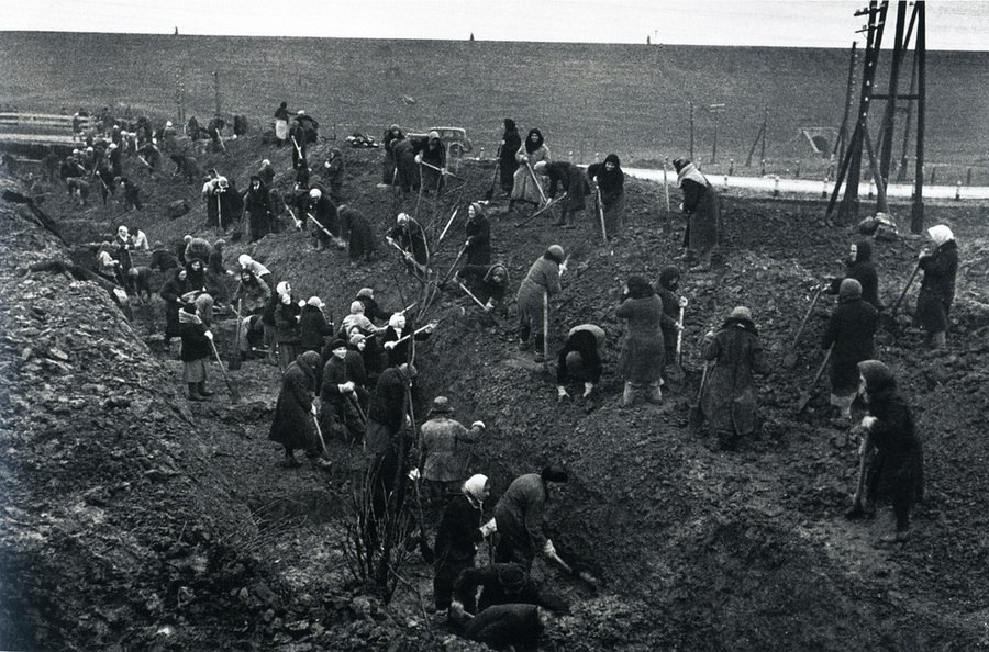Рытье противотанковых рвов под Москвой. Октябрь, 1941 г.