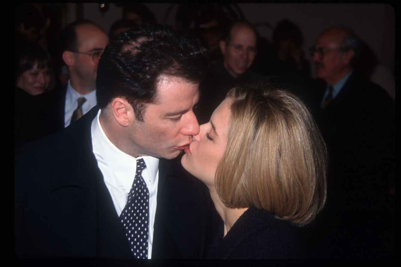 1995. Джон Траволта целует свою жену Келли Престон в Лос-Анджелесе на вручении премии Национального совета кинокритиков США за лучший фильм 17 января