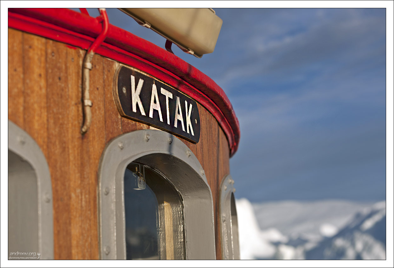 Наш «Катак» — бывшее научно-исследовательское судно 1960-х годов, переоборудованное для экскурсий, принадлежит туроператору “World of Greenland”. Через эту контору удобно заказывать различные экскурсии в Гренландии, от вертолетных туров до поездок на собачьих упряжках.