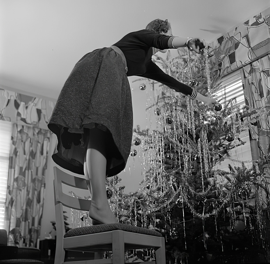 При украшении ёлки используйте стремянку, а не стул, как эта женщина