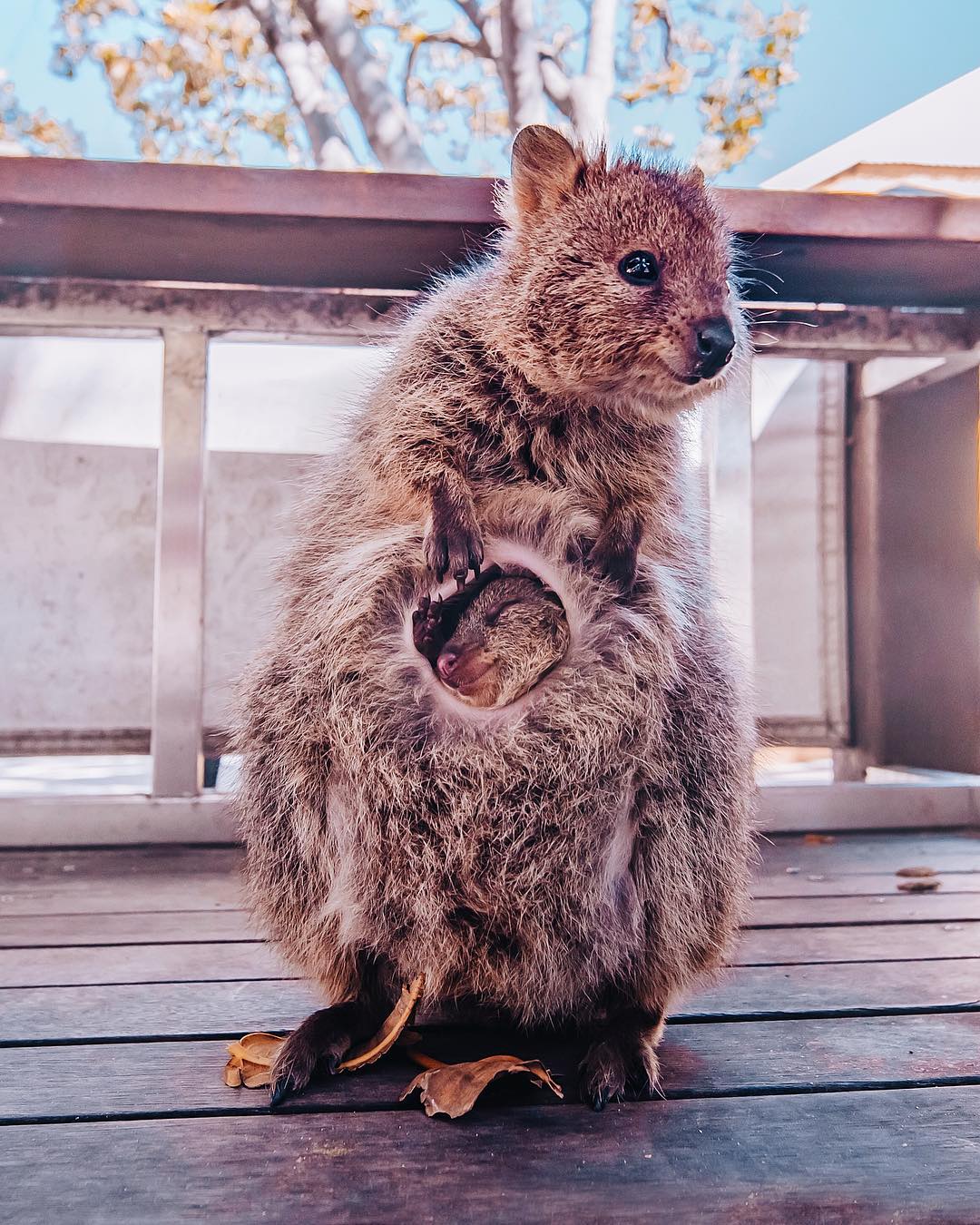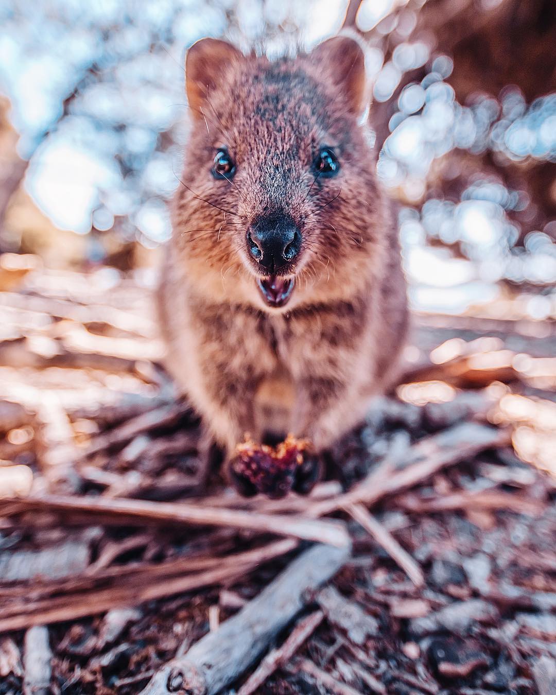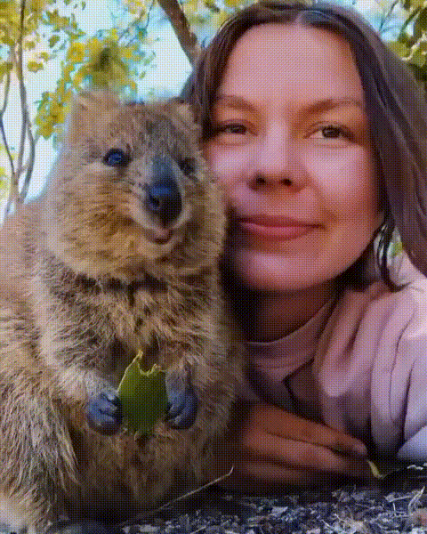 «Когда я впервые увидела квокку на случайном изображении в интернете, мой муж сказал мне, что я очень на них похожа. Мы пролетели 25 часов на самолёте и ещё 1,5 часа проплыли на пароме, чтобы увидеть их вживую. Однажды посмотрев на них — уже невозможно забыть! Мы пролетели всю планету, чтобы увидеть квокк. И это того стоило! Я нигде не чувствовала себя счастливее, чем здесь, лёжа на песке и предлагая этим зверюшкам зелёные листочки. К квоккам нельзя прикасаться, но когда они прижимались к моему лицу, я не могла представить себе ничего более приятного. Теперь, когда мне грустно или я устала, я просто открываю фотографии, смотрю на квокк и улыбаюсь» — рассказала Кристина