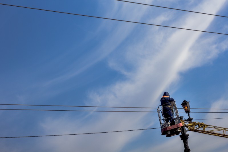 Одна женщина всё же указала на дом, возле которого уже работали коммунальщики. Снаряд угодил в крышу дома по адресу ул. Краснознаменная 103. Напротив здания, куда вчера было попадание, стоит школа. К счастью, она осталась невредимой, чего нельзя сказать о соседнем здании. Несколько рабочих разбирали последствия попадания на самой крыше, а их коллеги обрезали ветви деревьев, на которых сейчас лежали оборванные провода. Энергетики должны вернуть электричество в посёлок. Для них это не впервой. Можно сказать, рутиной стало восстановление подачи воды, электричества, отопления после того, как украинские силовики обстреляют жилые кварталы. Даже обстрелы больше не уважительная причина. Коммунальщики ДНР отправляются на места аварий вопреки инстинкту самосохранения и устраняют неполадки, чтобы город мог продолжать жить.