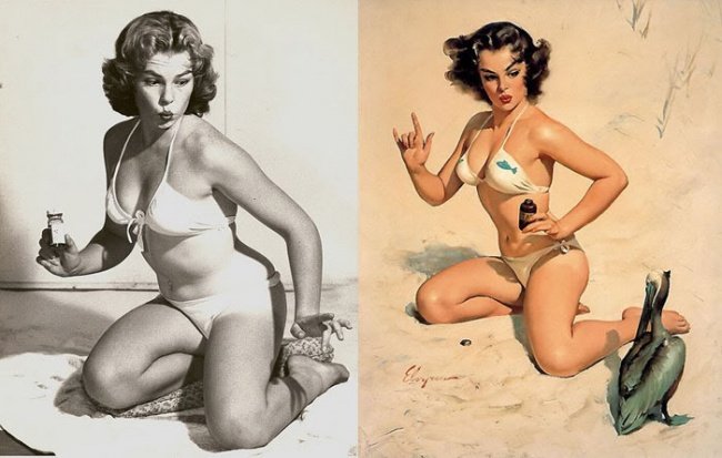 Художник Gil Elvgren культовая личность в культуре Pin-Up. Его календари и плакаты 50-х годов известны по всему миру. Джил Элвгрен в основном перерисовывал фотографии, добавляя свои фирменные штрихи в образы. Вот несколько примеров его работ.