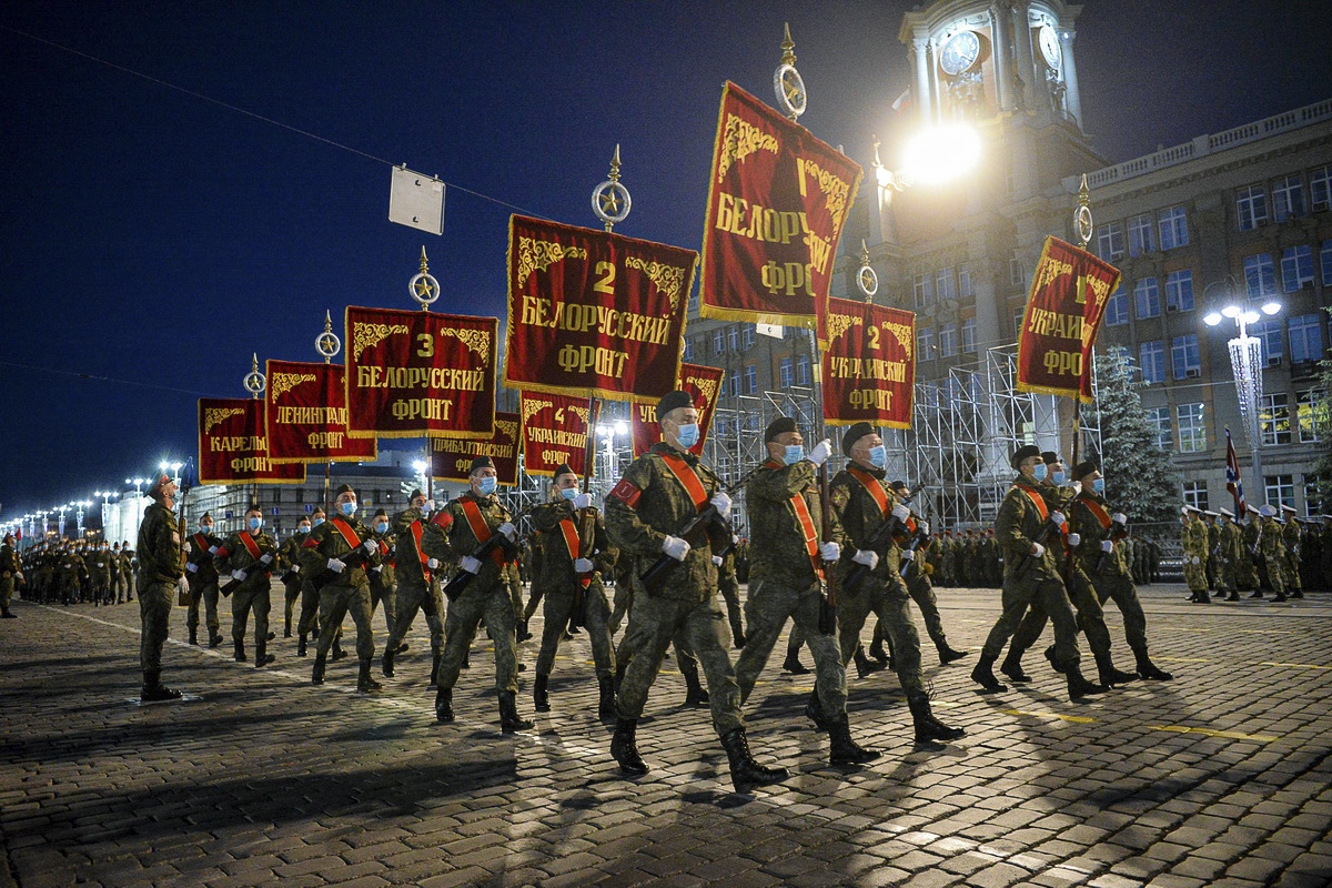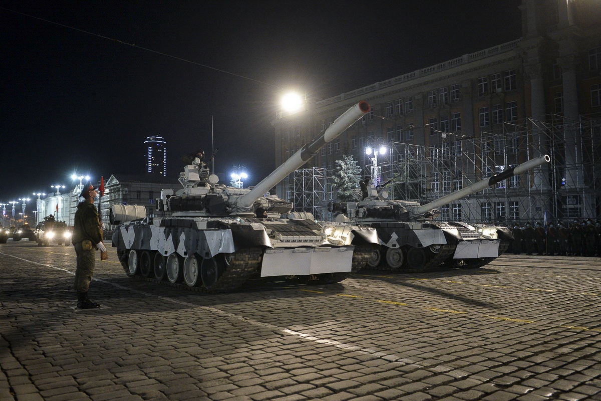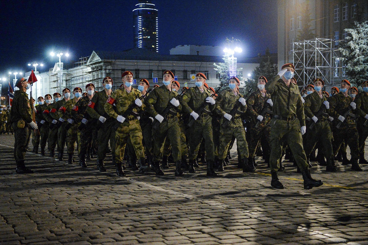 Первая ночная тренировка парада к 75-летию Победы прошла в центре Екатеринбурга. По площади 1905 года прошло порядка 20 пеших парадных расчетов и свыше 100 единиц военной техники – исторической и современной.