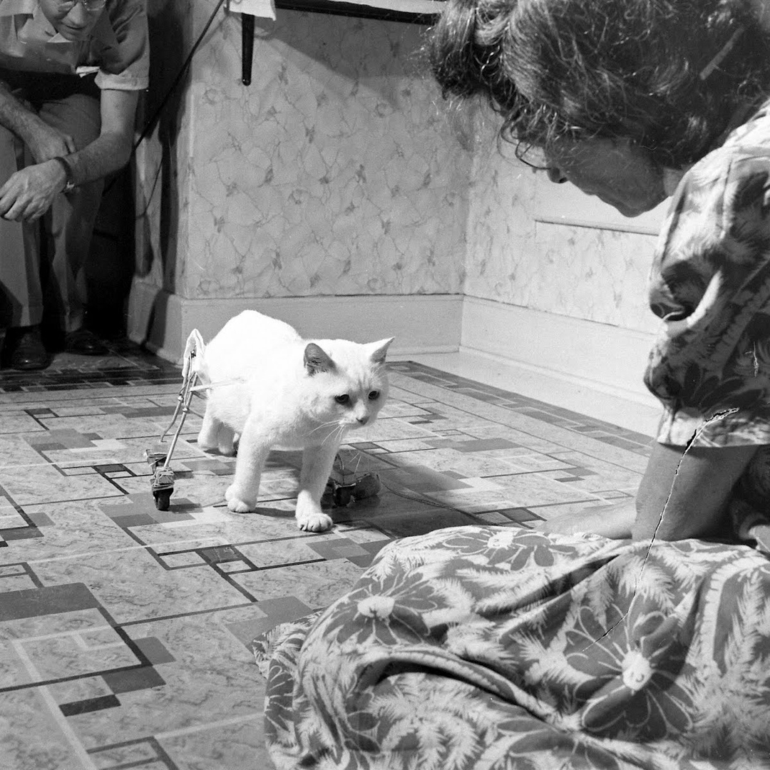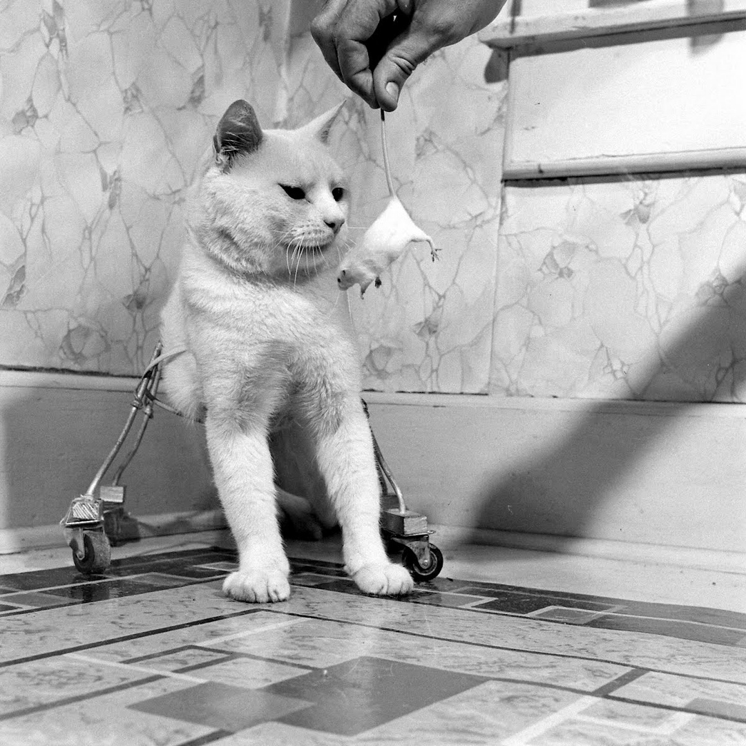 Серия трогательных фотографий, как добрые люди сделали специальную каталку коту-инвалиду, 1948 год