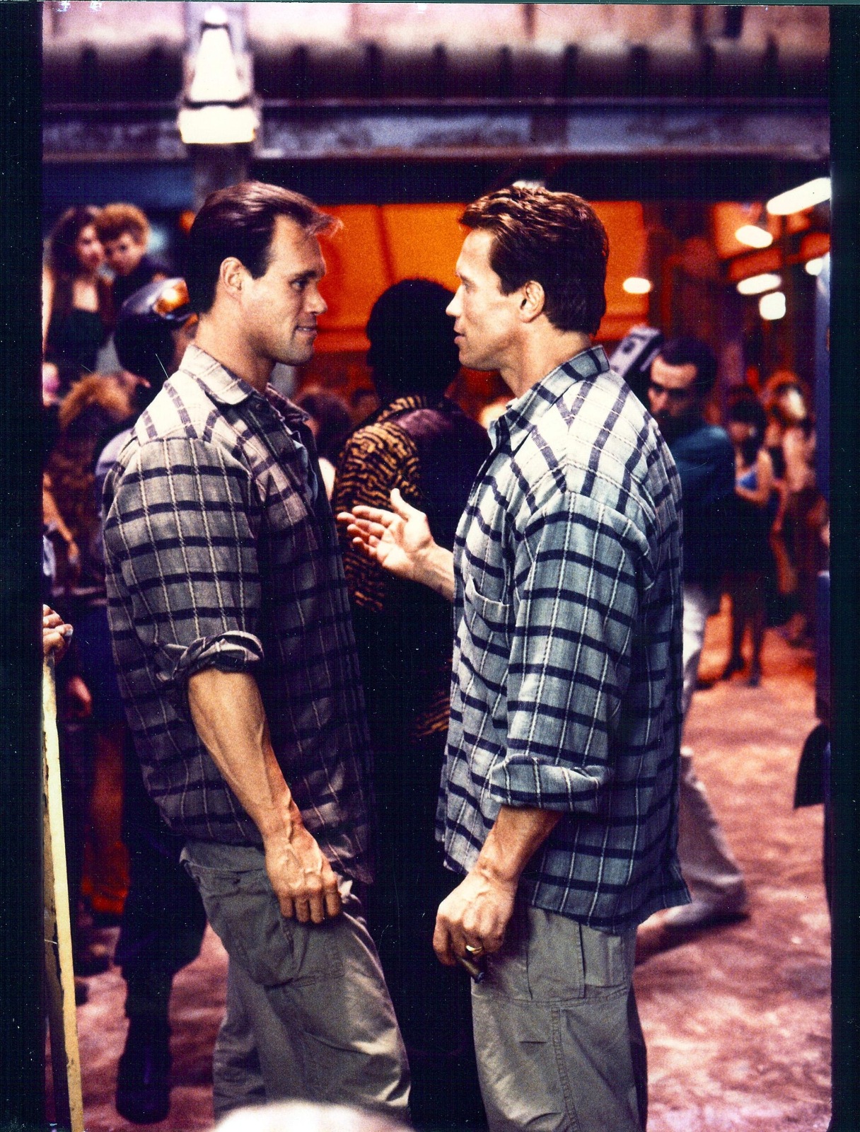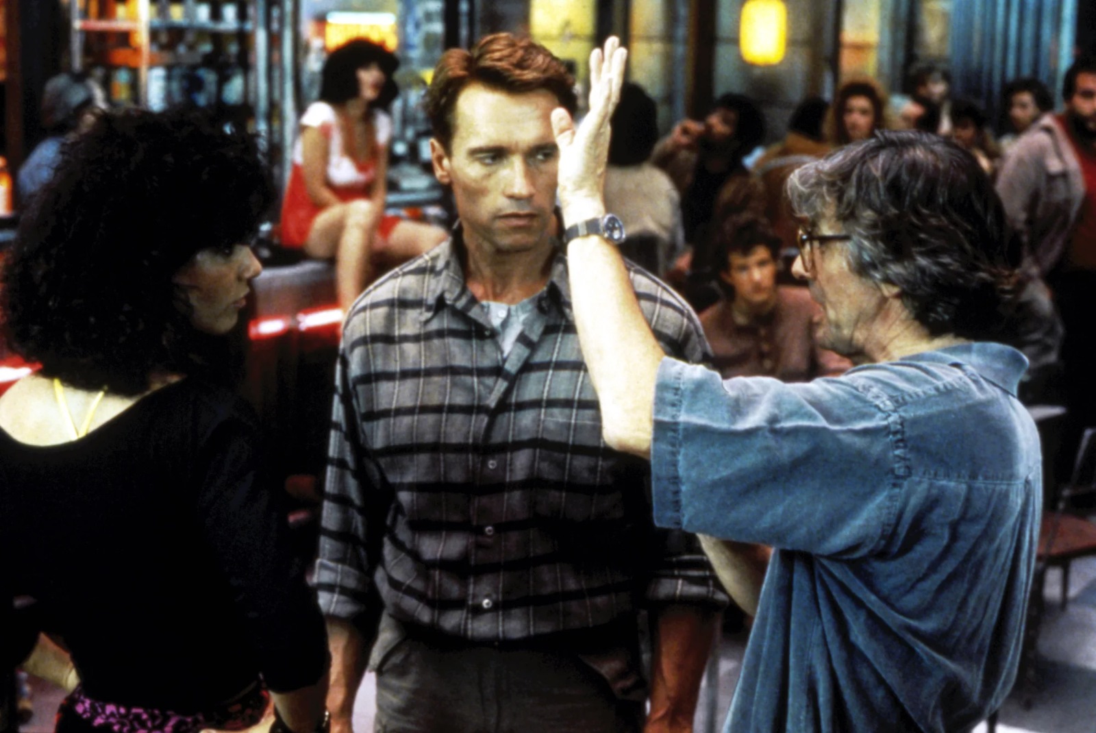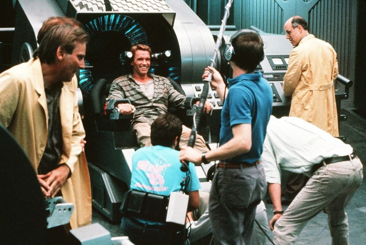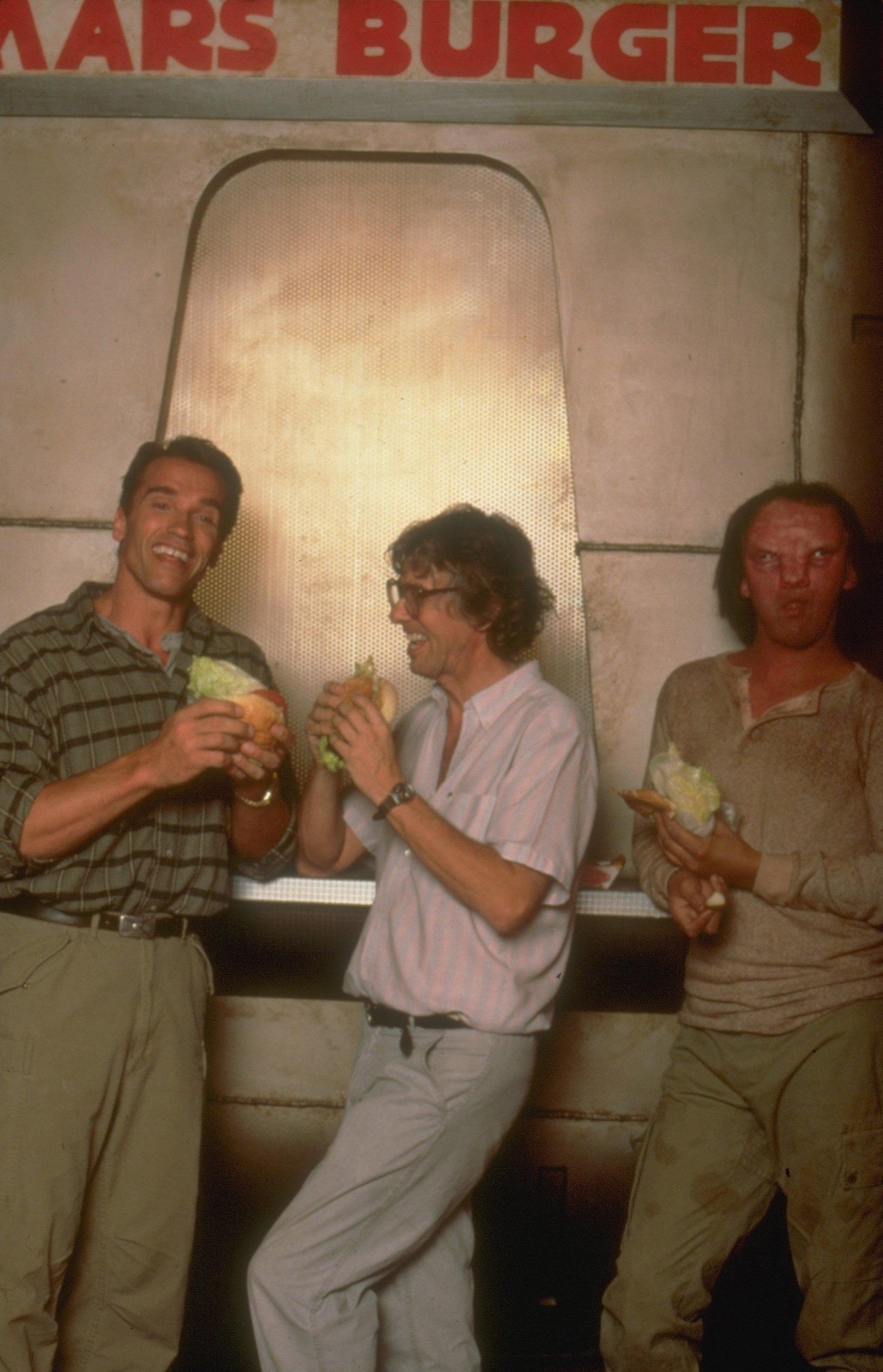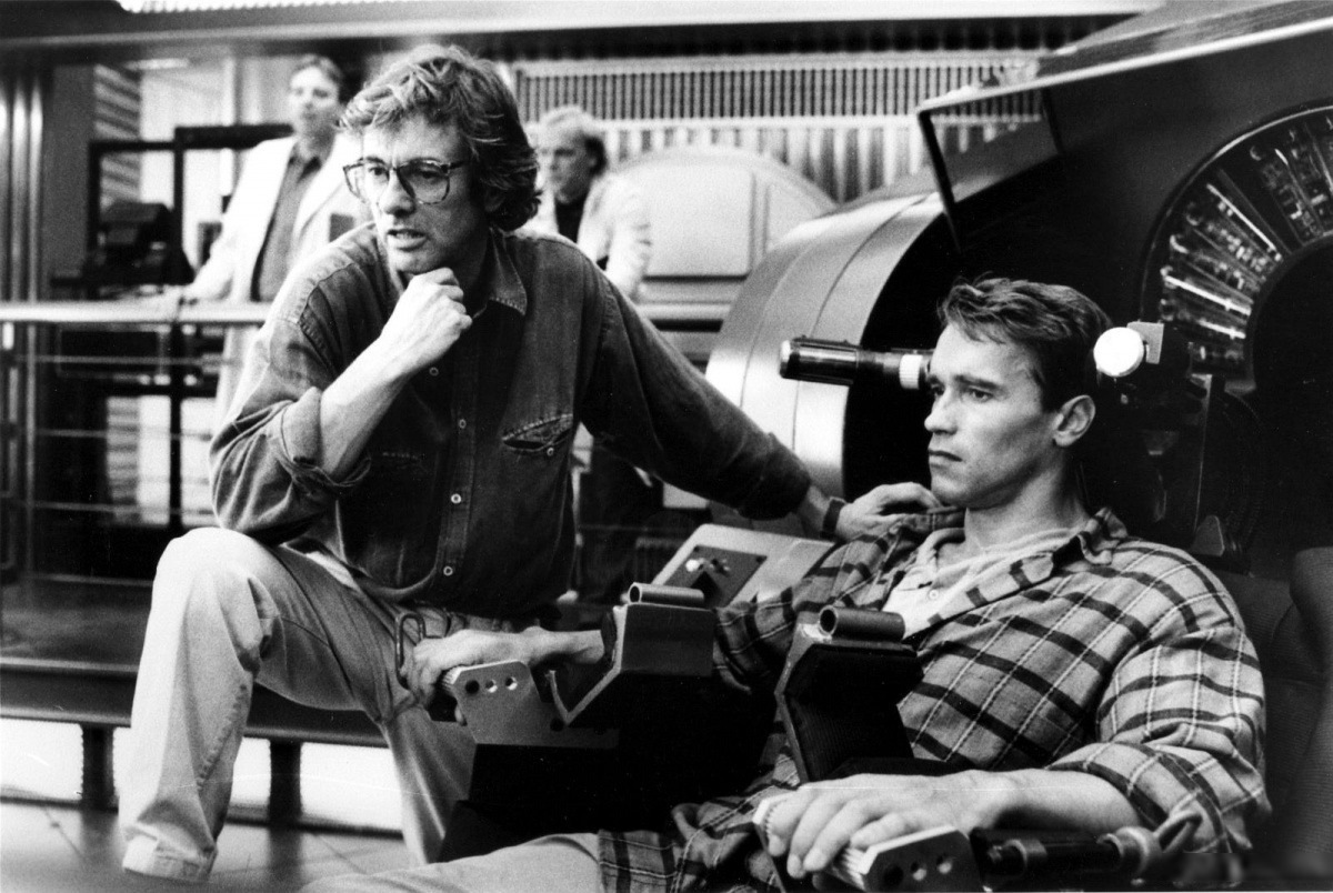 Пол Верховен дает указания Арнольду Шварценегеру и Рэйчел Тикотин