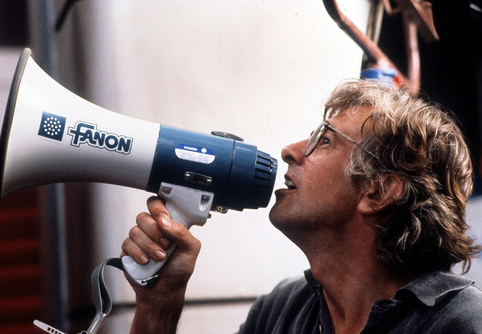 Режиссер Пол Верховен с мегафоном на съемках фильма "Вспомнить все"