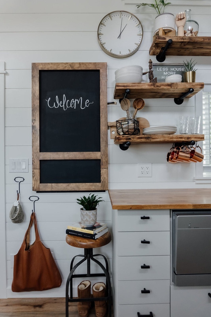 Любители свободы и путешествий Тони и Шарлотта Перес приобрели такой дом на колёсах в 26 "квадратов". Ребята живут в тёплой стране и существенная часть кухни находится на улице. Обратите внимание на складной столик внутри, который из меловой доски на стене превращается в обеденную зону — удобно!