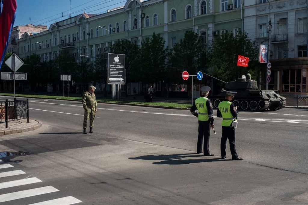 На время проведения репетиции центр Донецк был полностью перекрыт для проезда гражданского транспорта. Сотрудники МВД ДНР осуществляли охрану общественного порядка во время проведения тренировок военного парада.