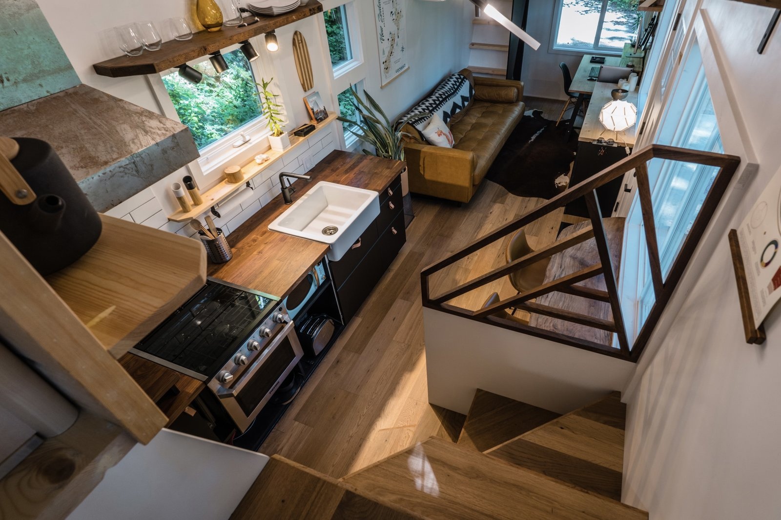 Автор говорит, что вдохновлялся японскими и скандинавскими стилями. Как интерьер, так и экстерьер отличаются контрастными оттенками черного и натурального дерева. Цена на такой домик начинается от $89000