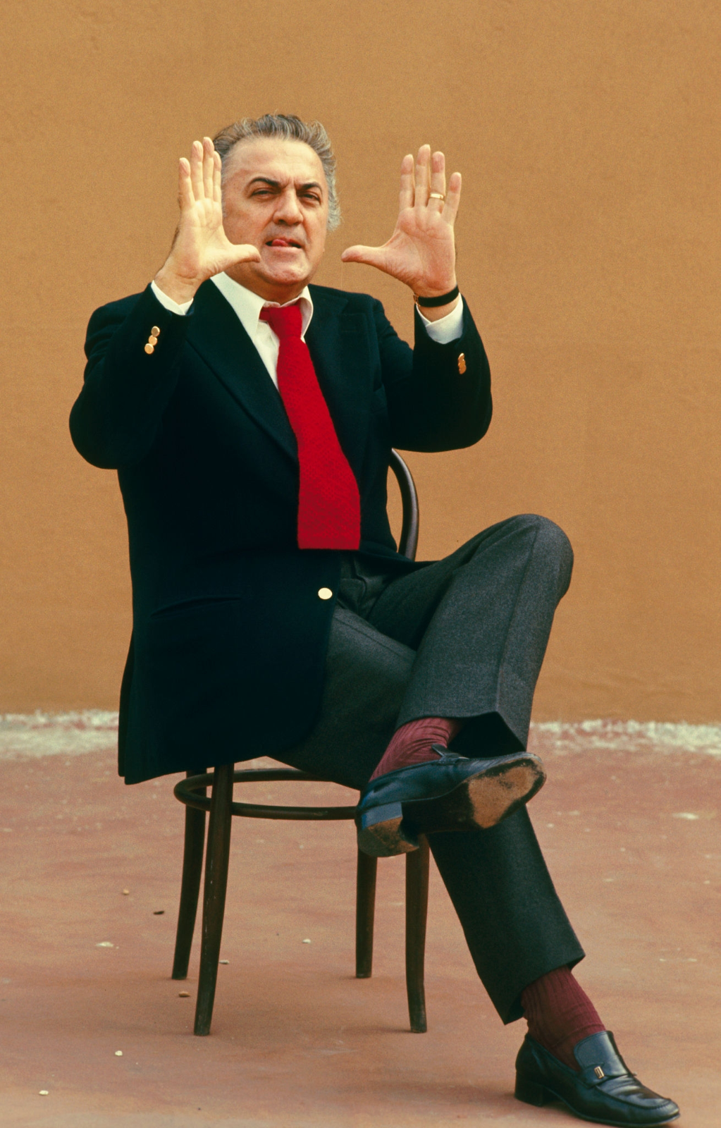 1973. Федерико Феллини на съемках своего фильма «Амаркорд»