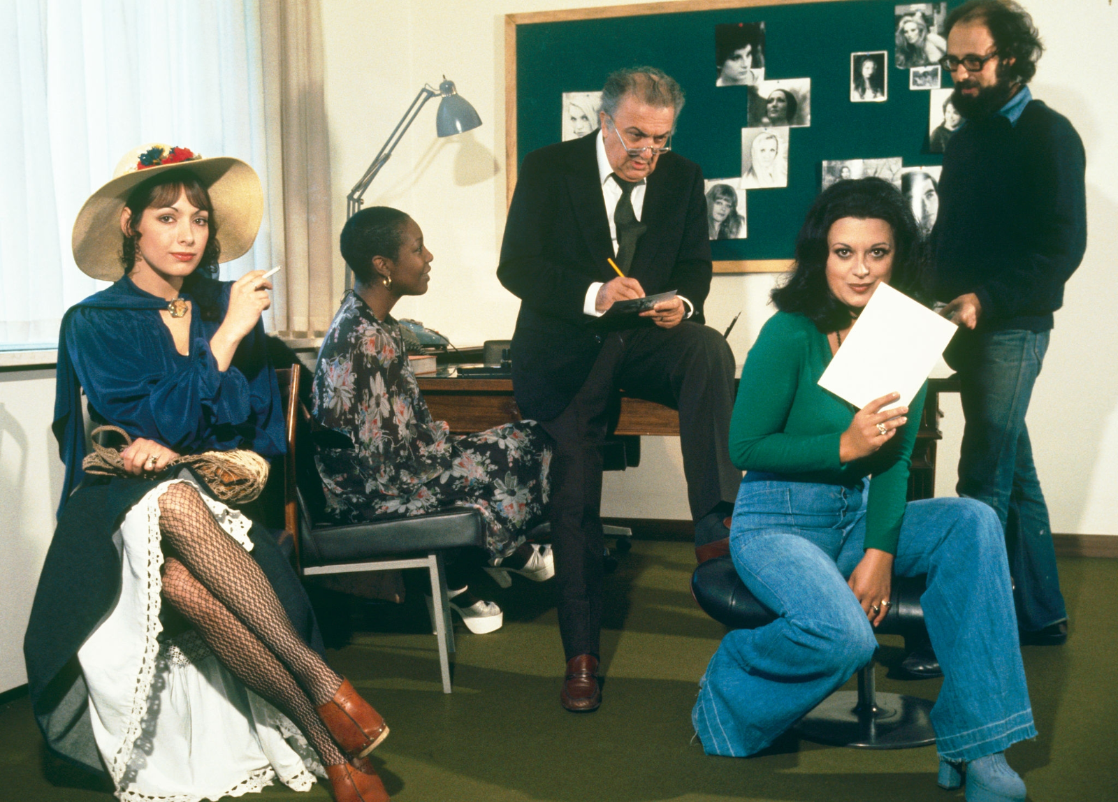 1975. Федерико Феллини во время кастинга с молодыми актрисами