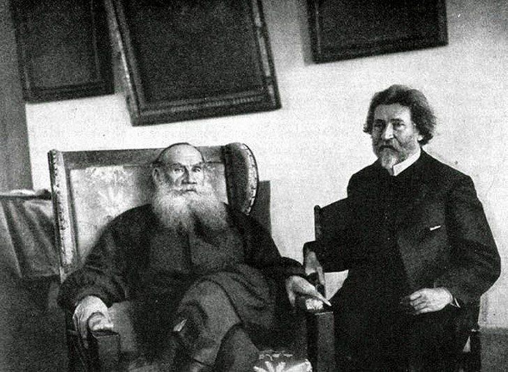 Лев Толстой и Илья Репин в Ясной Поляне, 1907 год.