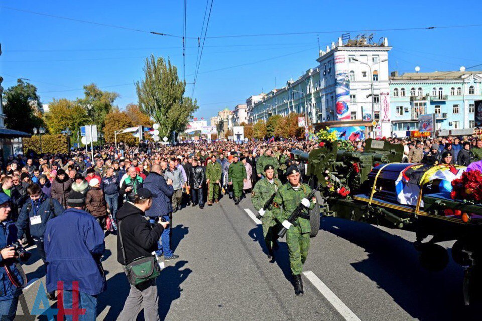 «Сегодня, 19 октября, в Донецке проходит прощание с погибшим в результате террористического акта полковником Вооруженных силы ДНР Арсеном Павловым. В траурном мероприятии приняли участие более 50 тысяч граждан», — отметили в МВД.