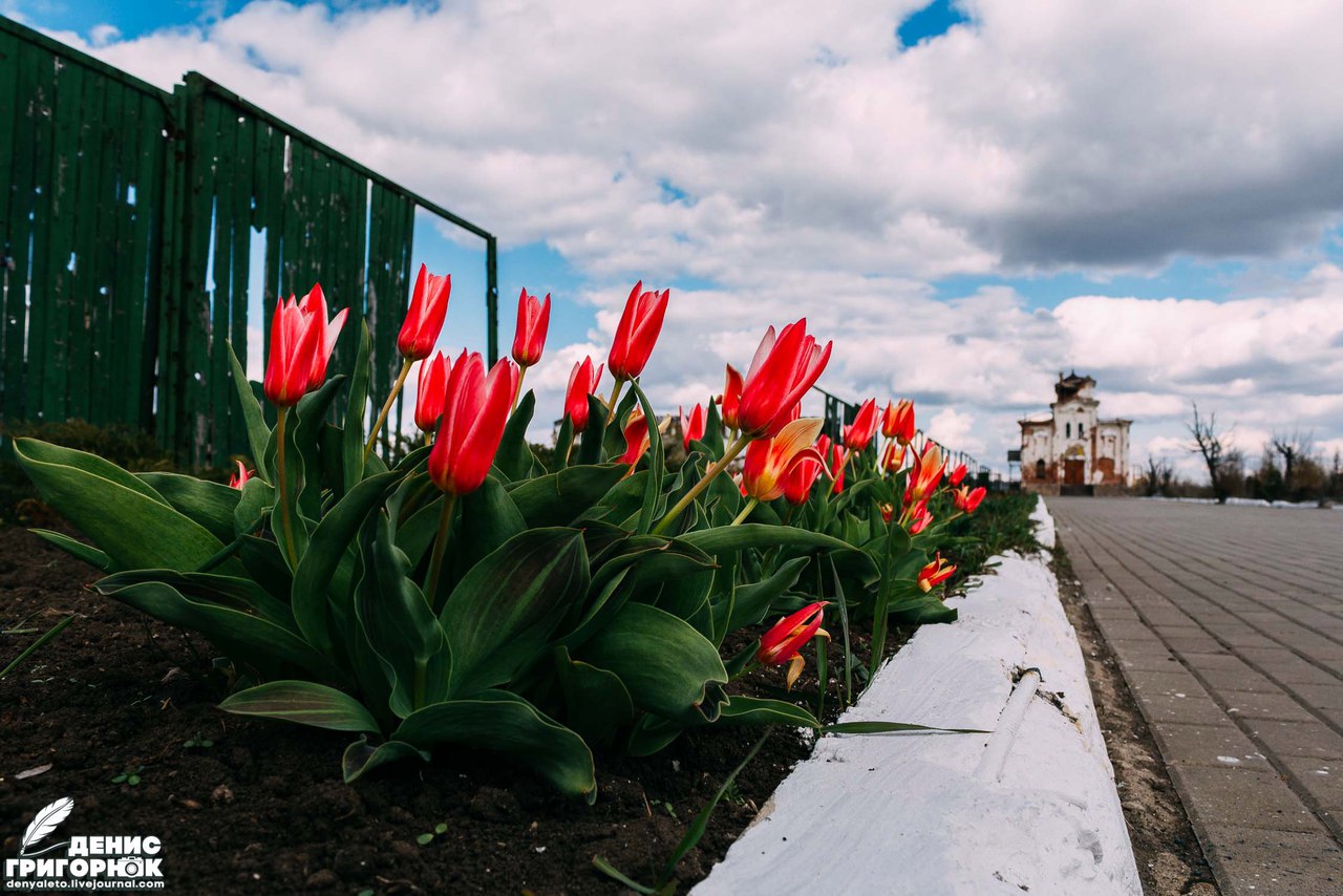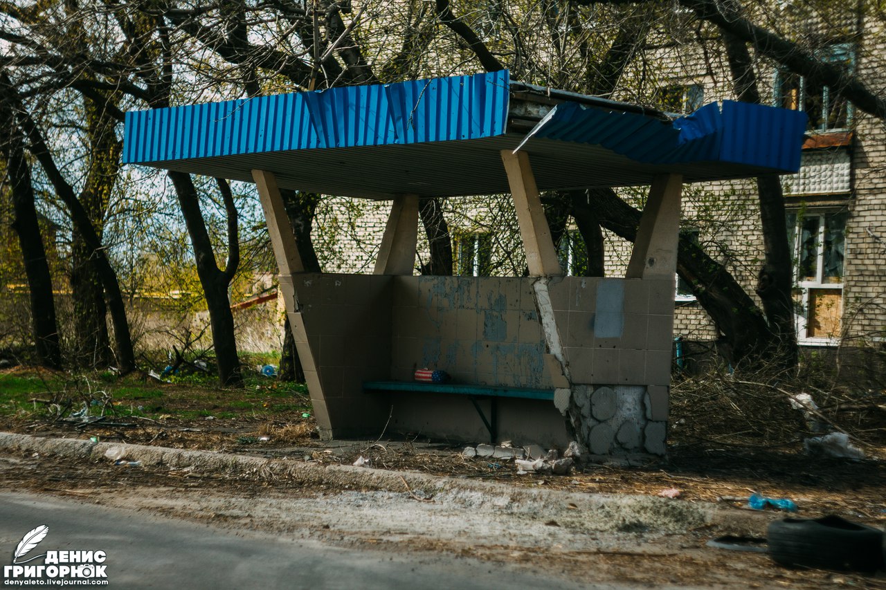 Дмитрий курил возле своей машины, когда я вместе с камерой, объективами и штативом подбежал на стоянку. Великая суббота оказалась холодной. Дул холодный ветер. По небу плыли белоснежные облака. Навигатор врал. Это было предсказуемо, ведь в интернет-картах не указана военная реальность Донецка. Мужской голос вёл нас через Путиловский мост, который сейчас лежал на поржавевшем украинском танке ещё с времён январского обострения конфликта 2015-го. Нужно было ехать в объезд. Об этом знают местные, но для россиянина эта информация стала новостью. Проехали ЖД вокзал. Раньше здесь дежурили белые бронированные машины мониторинговой миссии ОБСЕ, но сейчас стоянка перед вокзалом пустовала. Петляя по посёлку Октябрьский, мы выехали на апокалиптическую улицу Стратонавтов. Палитра различных разрушений впечатлила гостя. Несмотря на то, что он уже видел на западе Донецка, то, что сейчас было перед нами, поражало своей жестокостью.