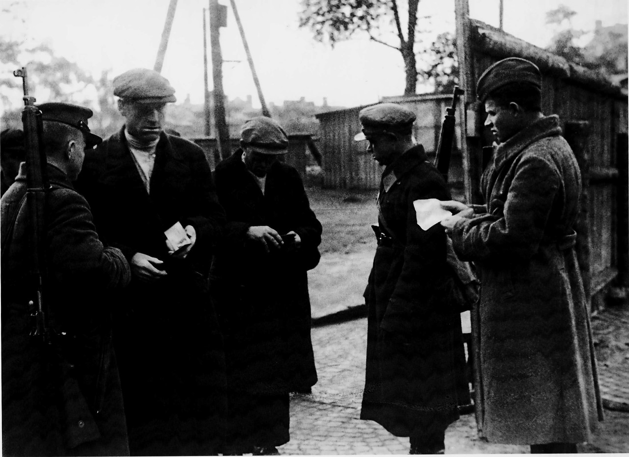 1941, 25 сентября. Проверка документов на одной из застав Кировского района блокадного Ленинграда